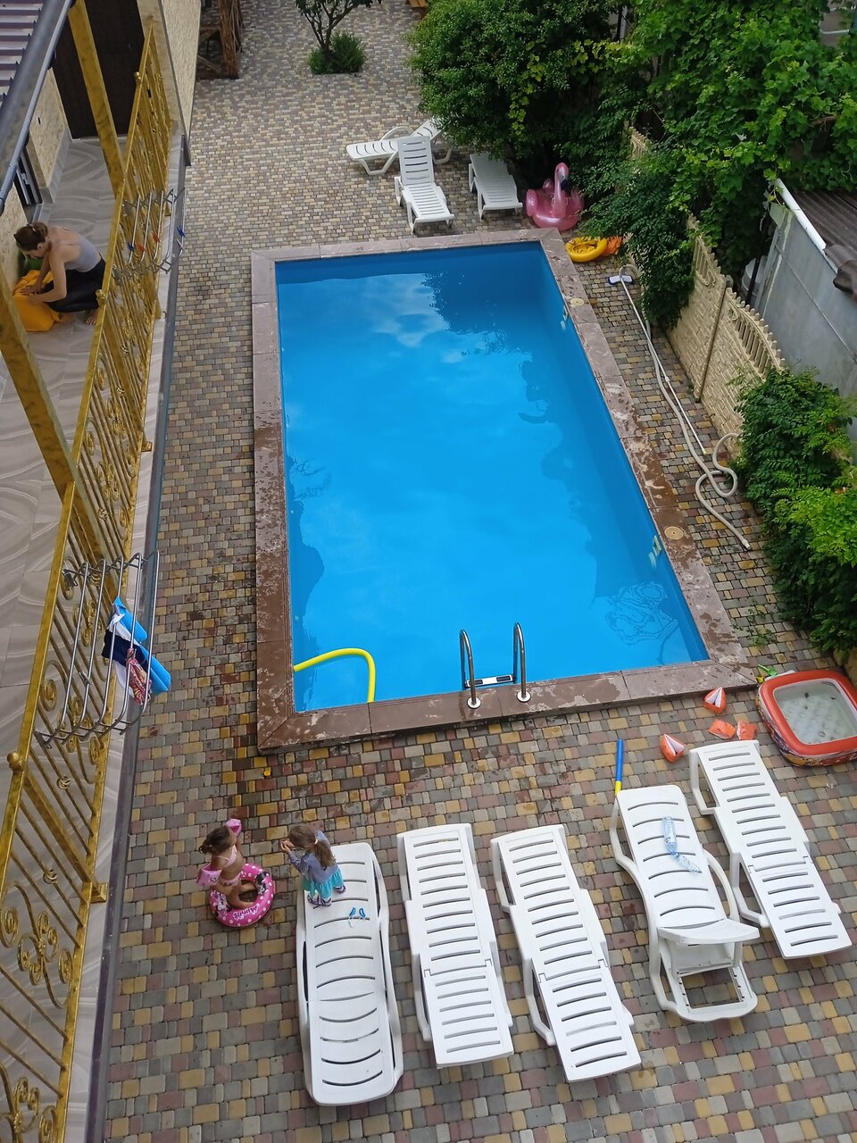 - Наличие бассейна и зон отдыха (шезлонги, детский батут, горка).
