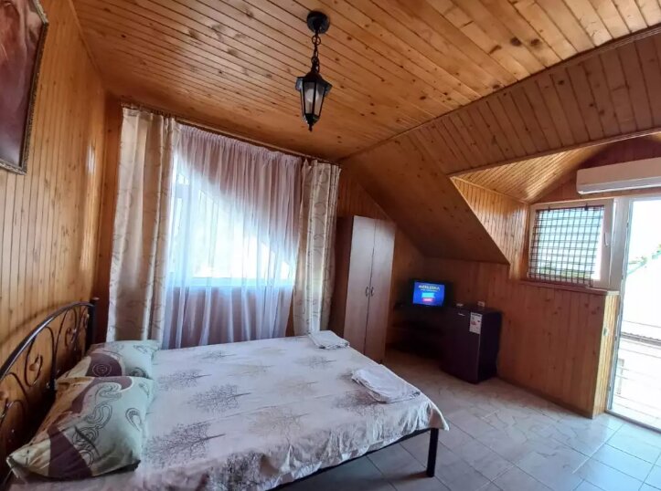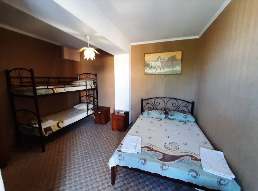 Хочется сказать большое спасибо за тёплый приём, приятный и спокойный отдых…. Мы случайно оставили свои маленькие подушки в номере, но это знак или предлог, чтобы обязательно вернуться…. Удобный номер, душ и туалет, (что немало важно когда вы с маленькими детьми) мини холодильник, кондиционер, чисто, уютно, парковка для машины, бассейн во дворе. Море,, рукой подать,,( через дорогу) вода чистая есть и рынок, и кафе магазинчик, а самое интересное умеренные цены…. Больше всего нам понравилась кухня расписаная , с книгами и баром на разные интересы… Детская площадка и мангальная зона… На следующий год даже искать и выбирать не будем сразу в,, жемчужину,,
