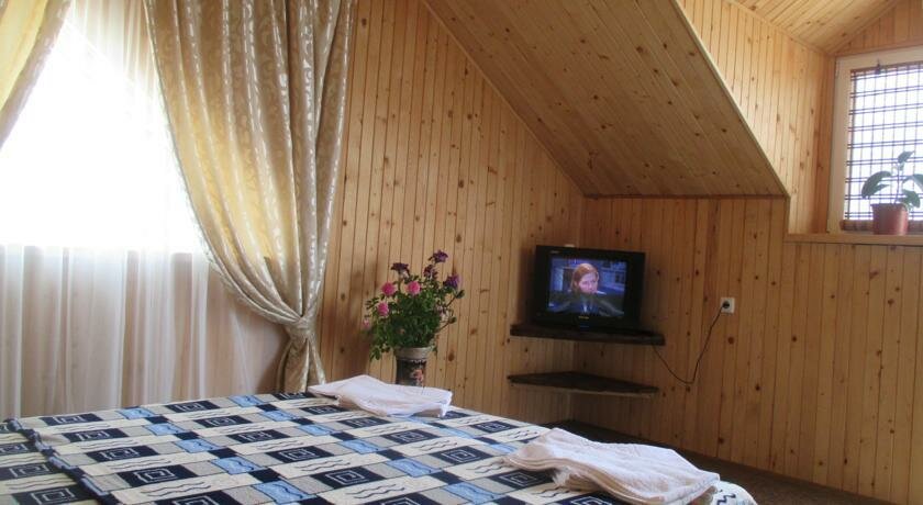 Предоставляет комфортные номера (от 2000 до 4000 ₽/ночь) с кондиционером, Wi-Fi, телевизором, холодильником и звукоизоляцией. Доступны услуги: бесплатная парковка, бассейн с баром, терраса, общая кухня, столовая, детская площадка и игровая комната.