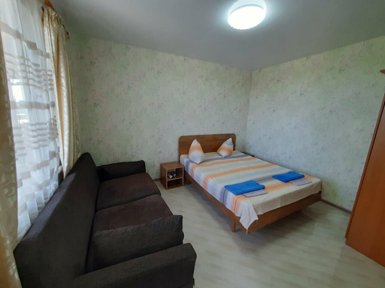 Хороший гостевой дом. Чисто, красиво, как на фото. Есть бассейн. Жили на 3 этаже, номер неплохой, чистый, полотенца выдали, мыло и туалетная бумага присутствовали. Один минус — очень тусклая лампочка в комнате. Хозяйка Леся очень приятная.