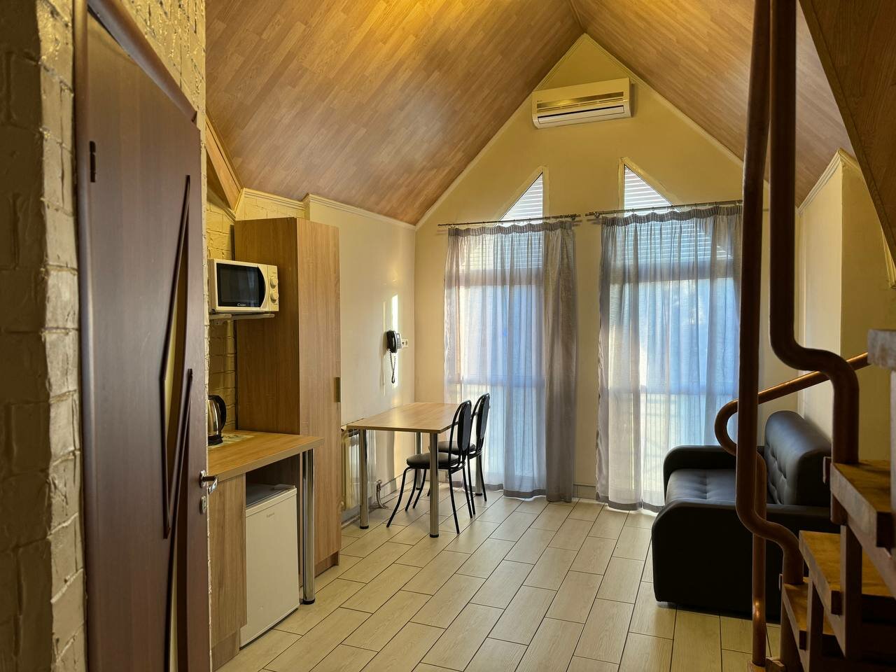 Почувствуйте себя уютно как дома в номере УЛУЧШЕННЫЙ плюс. Две небольшие комнаты расположены на двух уровнях. Уютная гостинная зона с мини-кухней на первом и спальня чилаут на втором. Система индивидуального кондиционирования поддерживает комфортный