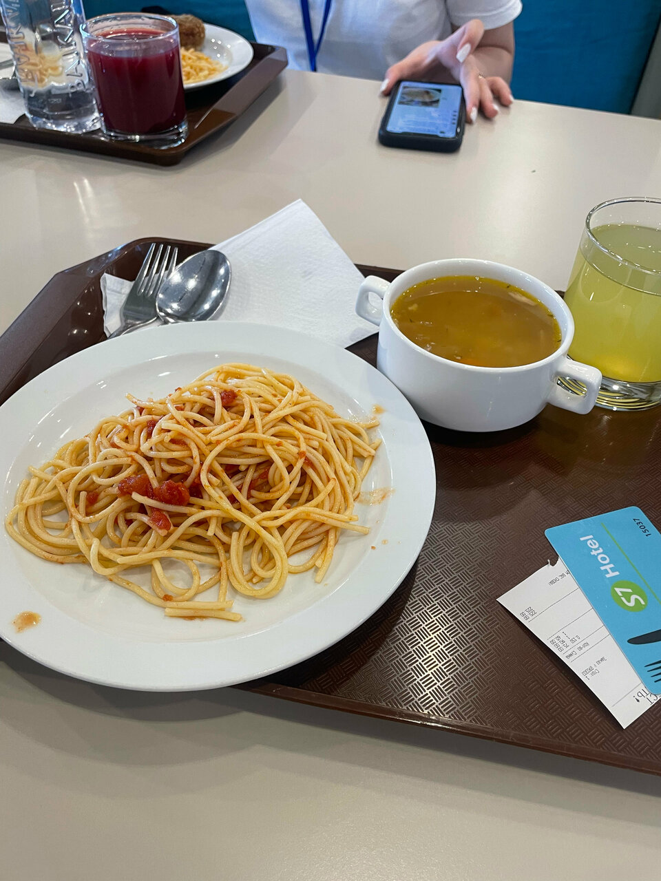Зашел в местную столовую. Тут недавно ремонт капитальный закончился, над дизайном, сразу видно, основательно поработали — все смотрится очень красиво, играет легкая приятная музыка…Фото всей атмосферы не передаст! Покушать готовят на любой вкус, несколько вариантов супов, мясных блюд и гарниров. На выбор собственные кондитерские изделия. А для гурманов прямо в обеденном зале есть зона ‘паста-бар’, где повар прямо по Вашему заказу готовит пасту. Карбонара — пальчики оближешь)