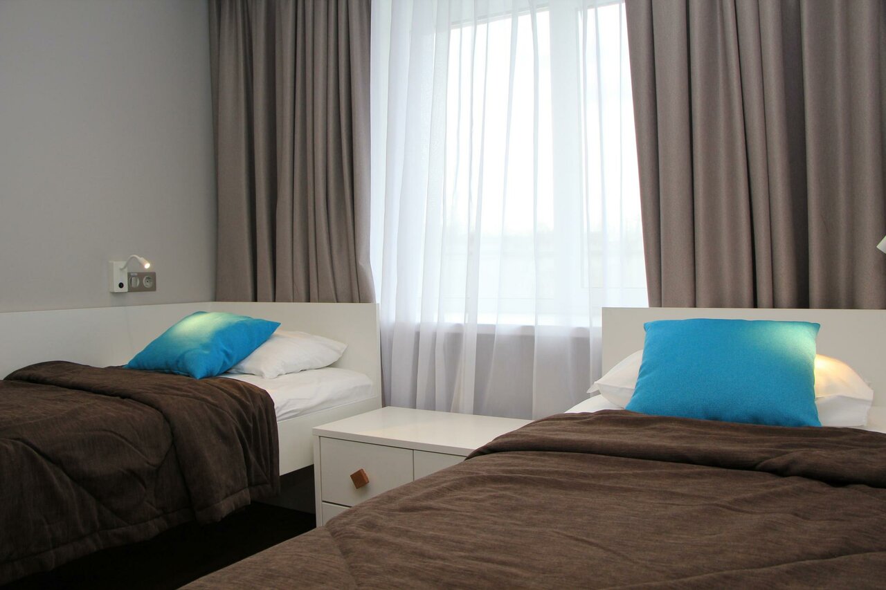 Очень уютный номер и большая территория (так как это центр подготовки S7 для летных экипажей), но добираться не совсем удобно и со стороны выглядит совсем не как гостиница (территория огорожена, КПП, отсутствие таблички гостиницы). Столовая в соседнем здании, все просто, но съедобно.