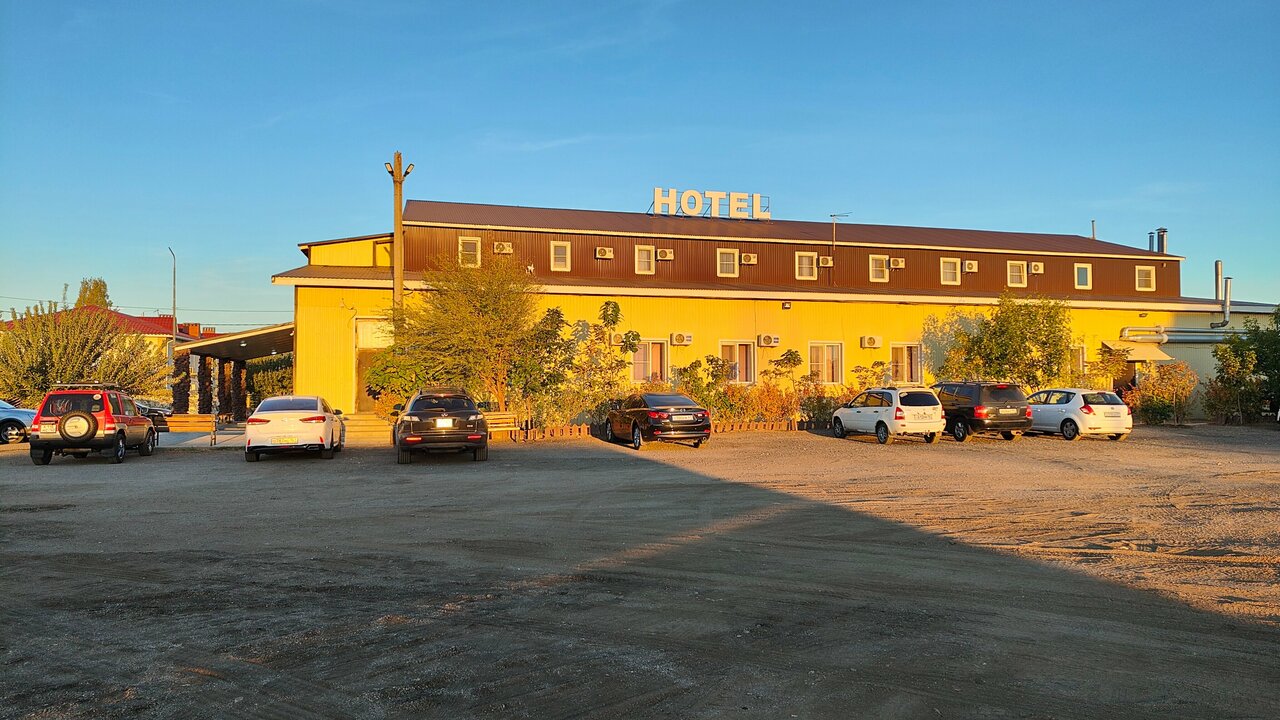 Гостиница — на переночевать по дороге. Цены гуманные. Номера большие чистые, с кондиционером. Но бюджетность — сказывается. Чайников на все номера не хватает. Администратор по совместительству — бармен…. Четверочка.