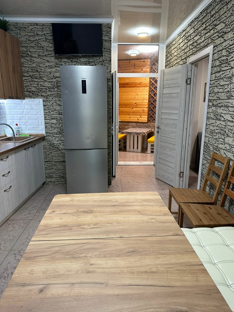 - Подходит для отдыха с детьми.; Хороший стол и стулья.; Хорошая атмосфера.; Наличие кухни, плиты, микроволновки.; Чистые номера.