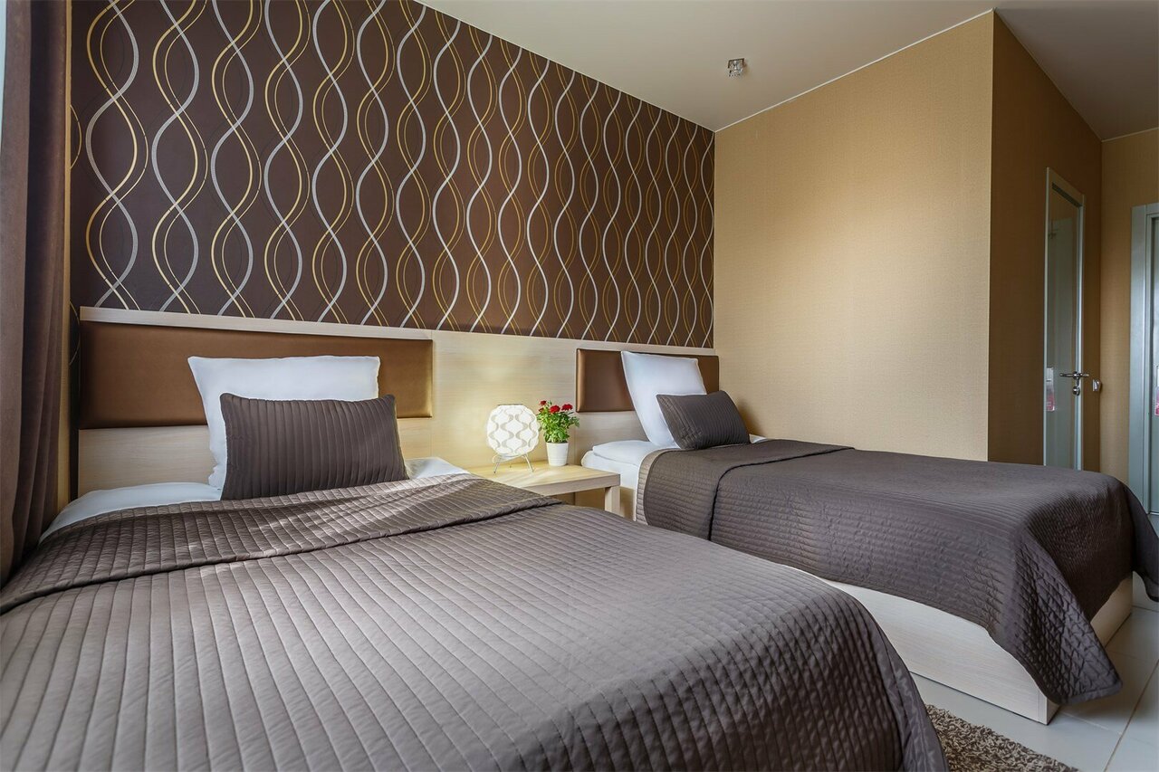 Останавливались на сутки, за 3300 очень достойный отель, все чистенько и аккуратненько, приветливый персонал, в номере удобный матрас и удобные подушки, шторы блэкаут, понравился завтрак было много вариантов из чего выбрать, нас поселили с той стороны, где из окна видно немного озеро. Расположение удобное, в 4 минутах остановка общественного транспорта, есть недалеко магазины, доставляют курьеры еду заказали яндекс еду, привезли прямо в номер без проблем. Рестораны на территории есть, но мы не пробовали — ценник выше среднего, в городе есть интереснее места где покушать. Зубной набор за отдельную плату 200 руб. Есть в номере вода, мыло, шампунь и гель для душа. Слышымость от коридора достаточно высокая, но нам повезло людей вокруг нас было мало и выспались без проблем. Единственное, что не продуманно — это куда вешать полотенца, их много и вешалка расположена над унитазом, что не удобно. Но в целом достойный отель за нормальную цену, буду рекомендовать.