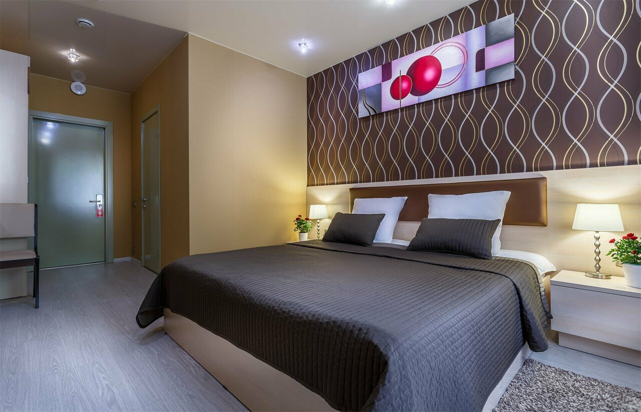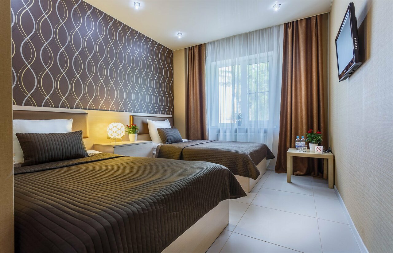 Были в отеле семьёй с двумя детьми. Разместились в номере с тремя кроватями. Позавтракали, шведский стол, разнообразно. Рядом есть пятёрочка. Рекомендую,останавливаемся здесь не первый раз.