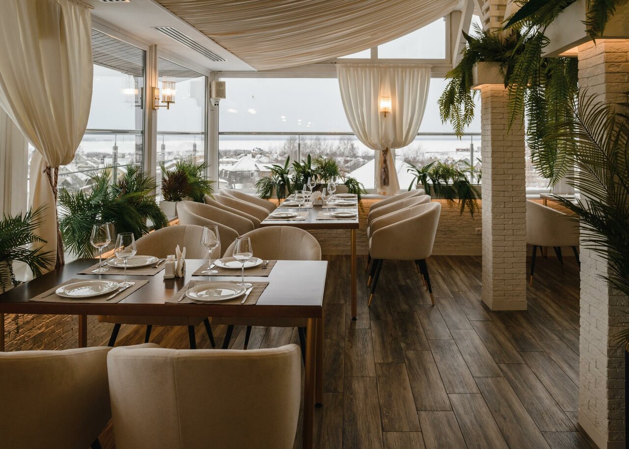 Удобное расположение, парковка, вежливый персонал, чистота в гостинице и номерах, очень вкусные завтраки! Кровати удобные в номерах тепло и уютно. Ресторан панорама…. Расположен на последнем этаже, панорамные окна, красиво можно посмотреть на закат. Понравилась живая музыка. Еда очень вкусная.