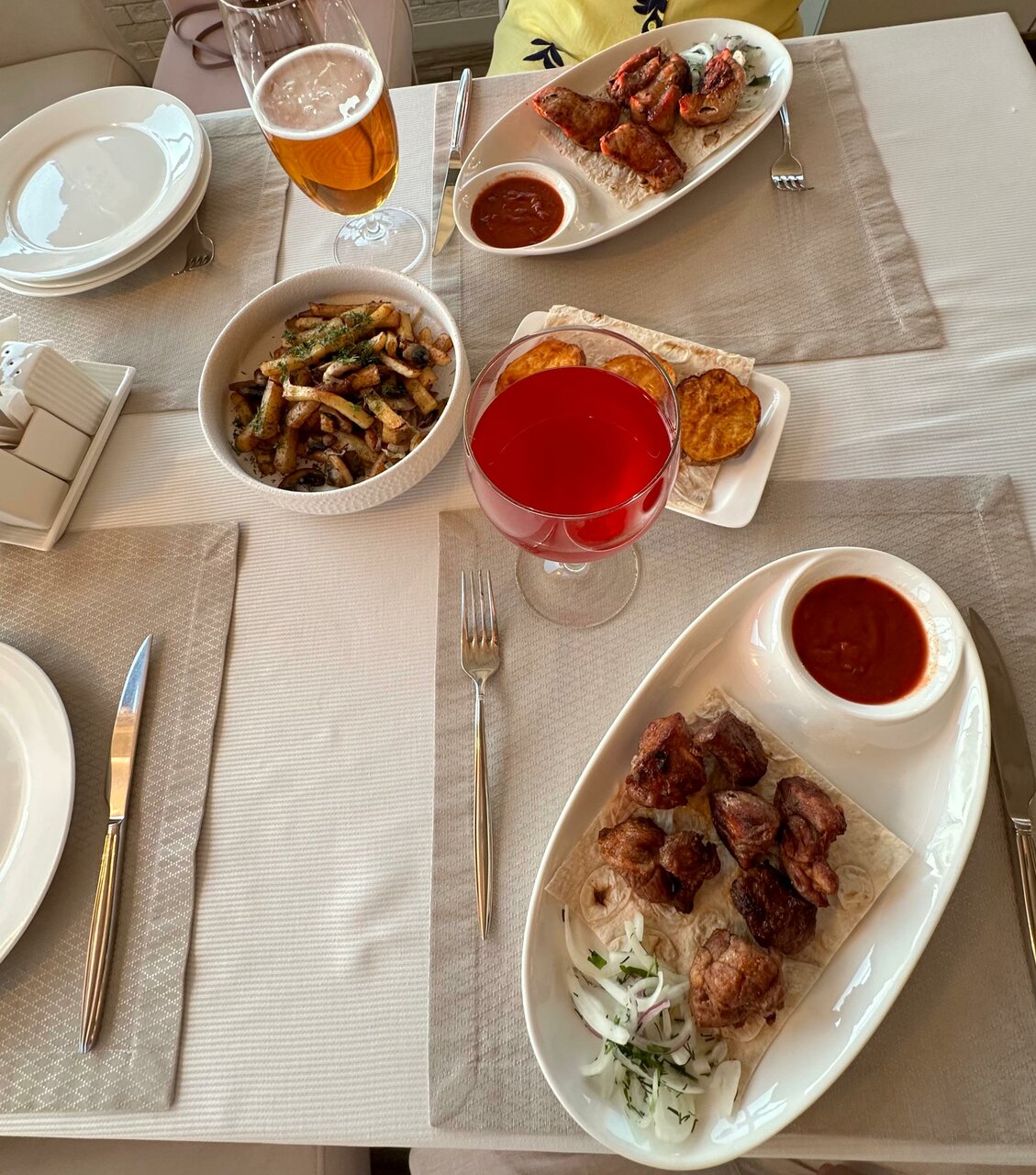 Отличный отель , чистота , белье , полотенца и халаты кипельнобелые , все как я люблю . Номер был повышенной комфортности . Все предметы личной гигиены , тапочки все было предоставлено . Кондиционер , фен все исправно работали . Очень внимательная управляющая Лиля , ей отдельное спасибо. Есть детская игровая комната , можно поиграть в игровые автоматы, порисовать и просто провести время . Единственный минус- это завтрак , хотелось бы больше разнообразия, а именно выпечки , фруктов , сырников , запеканок , нарезок . Ресторан на первом этаже с грузинской кухней — очень вкусно , в меру остро , официант быстро обслуживает, все понравилось . На 3 этаже ресторан Панорама , ну это нереально красивое место, очень уютно , роскошно , великолепный вид на Плещеево озеро и закат . Кухня европейская , все очень вкусно, обслуживание быстрое , вежливое . Однозначно рекомендую посетить оба ресторана, а если позволит время остаться в отеле .