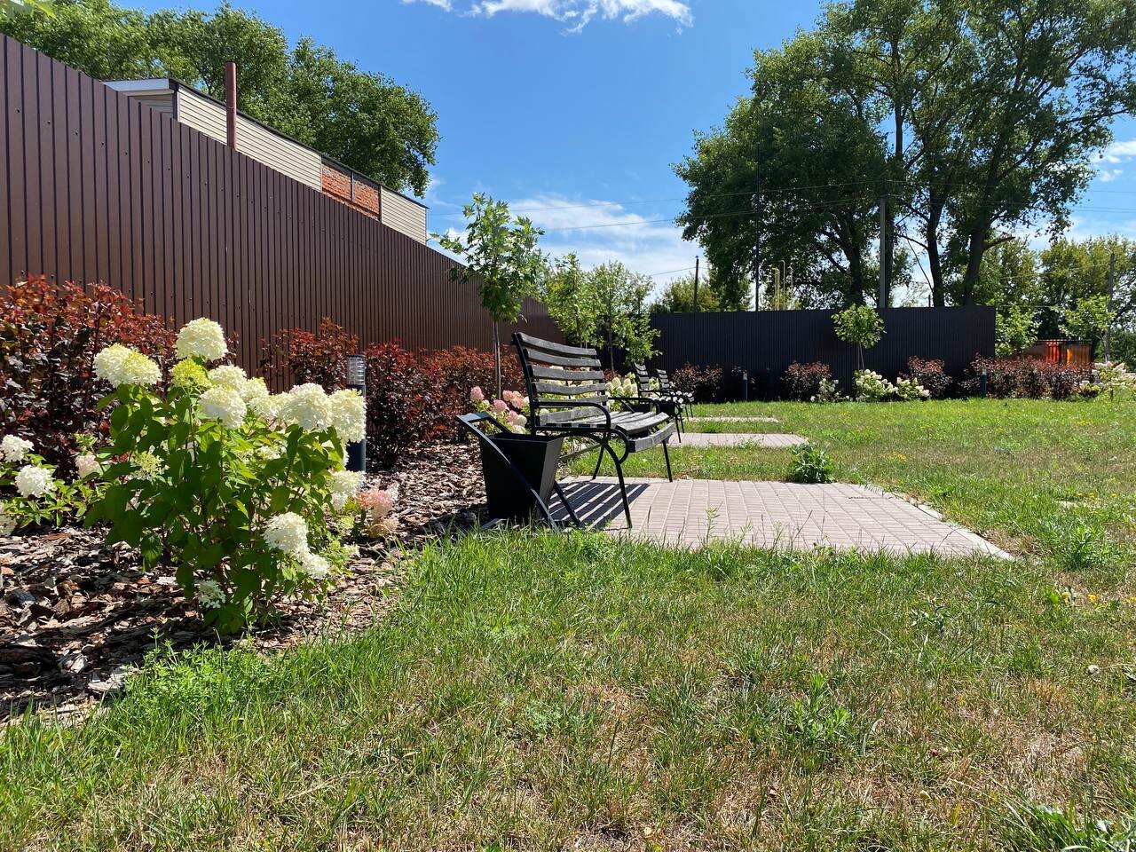 - Большая территория с беседкой и детской площадкой.