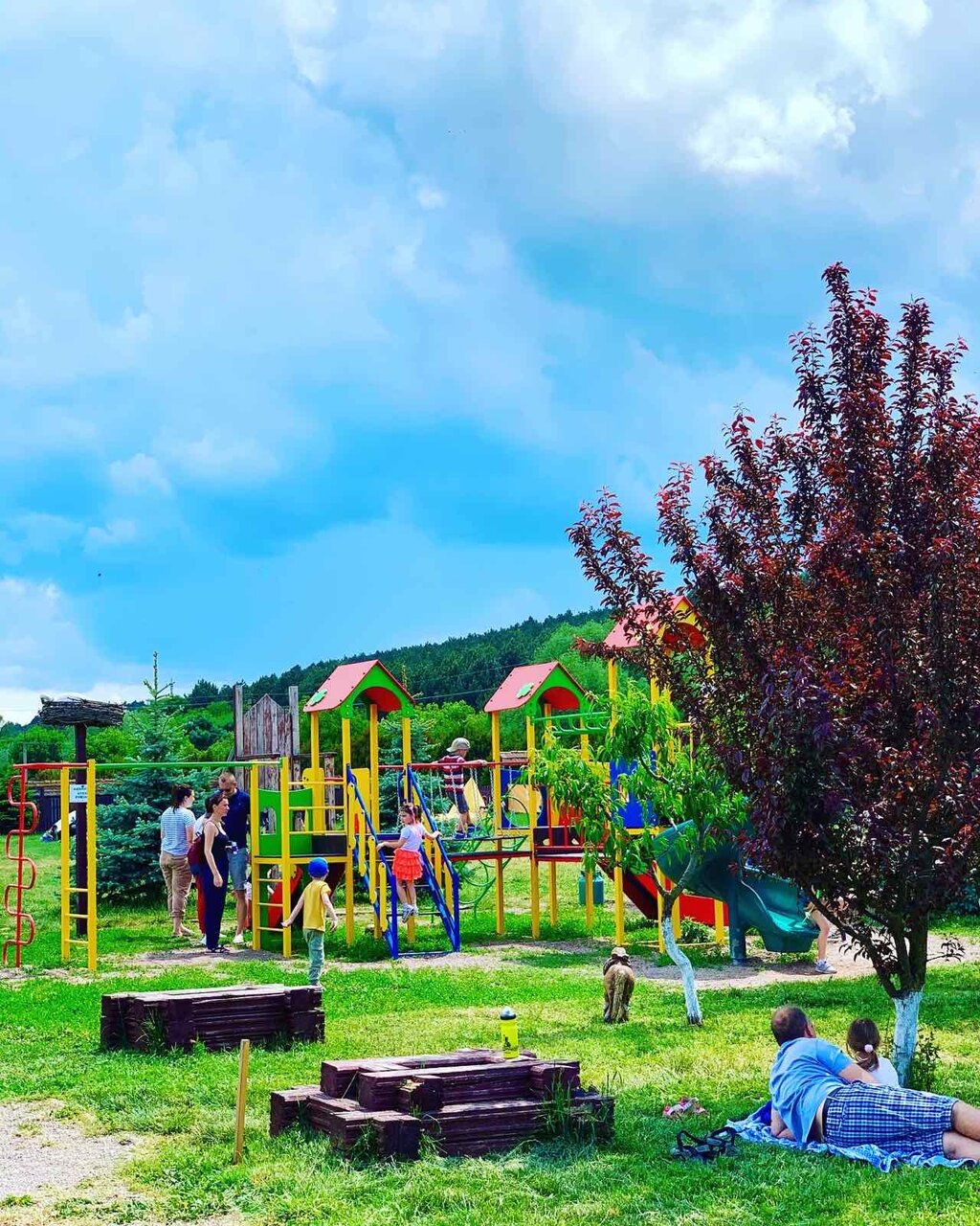 Классное место для отдыха, рядом речка, есть водоем и лебеди. А для детей есть мини зоопарк