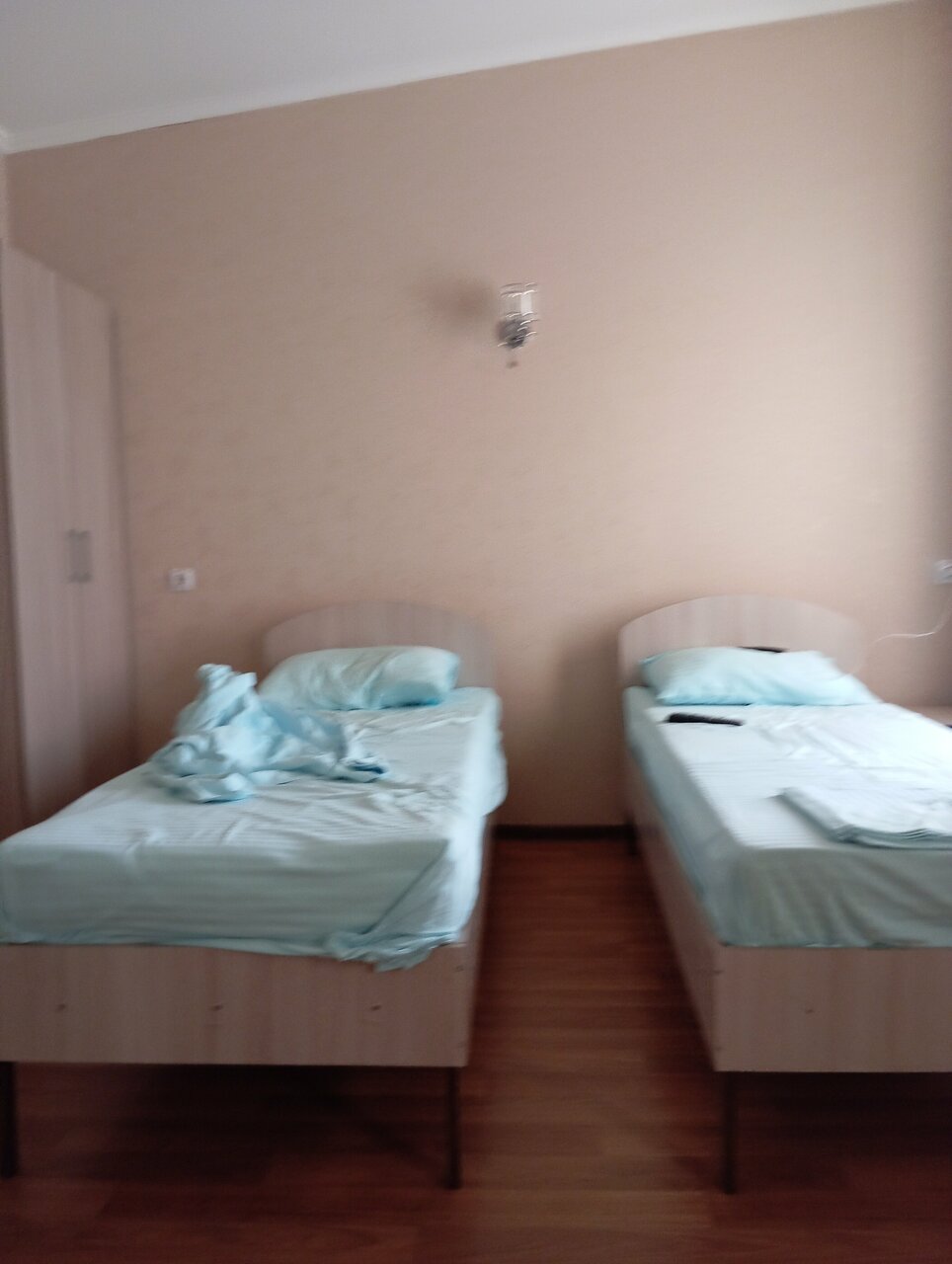 Кровати хорошие, выспались. Но помыться успел только один человек, потом пошла очень грязная с черным осадком вода. За это только одна звезда.
