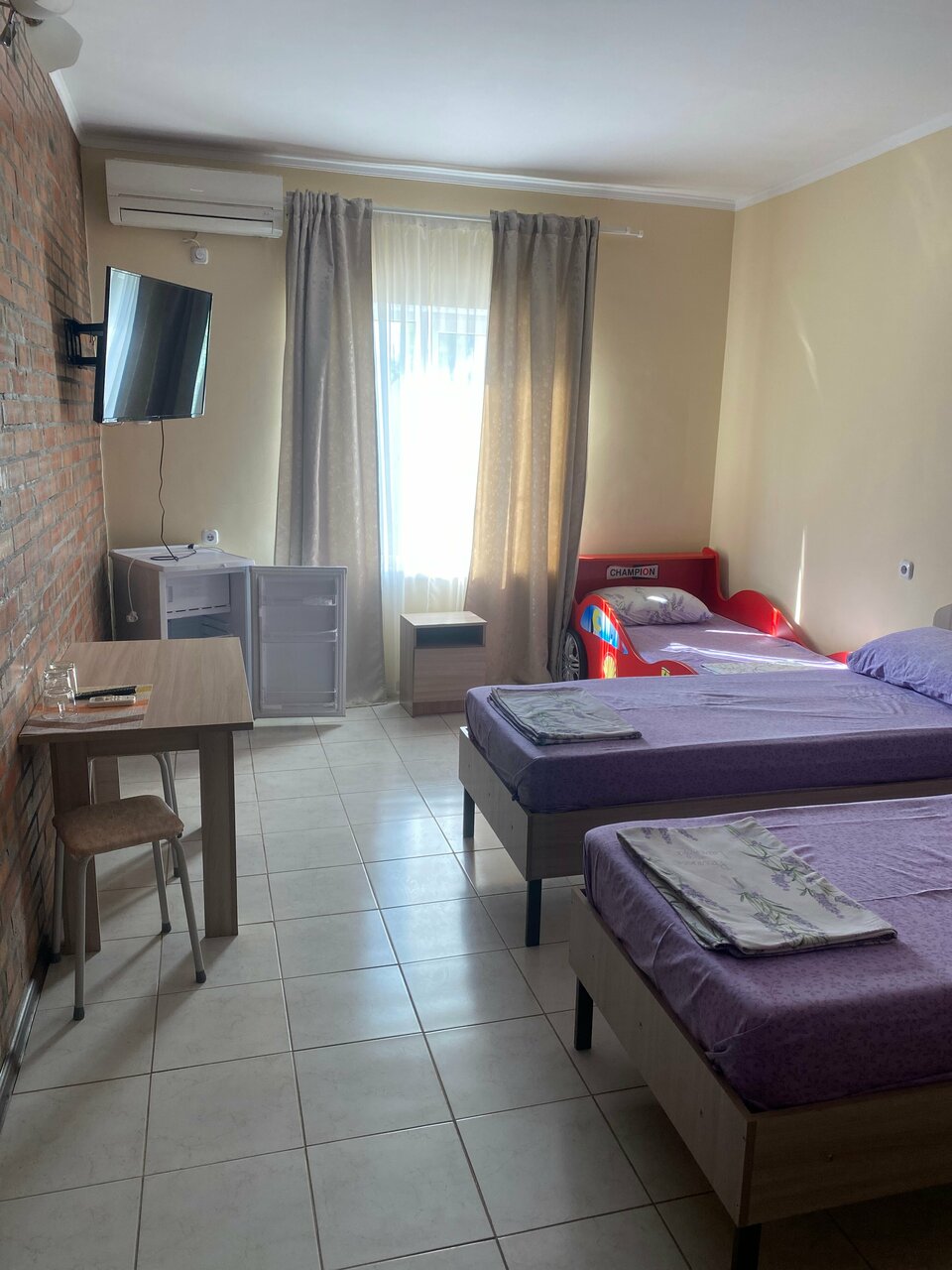 Были приятно удивлены,в номере есть холодильник,чайник,мебель новая,кровать удобная,заезжайте,отдыхайте,не пожалеете.девочкам спасибо за чистоту.Процветания!!!