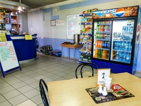 Останавливался перекусить и переночевать. С едой нормально — вкусно и душевное обслуживание. Большая охраняемая парковка, бесплатная для легковых машин, экипажи которых ночуют в мотеле. Бюджетные миниатюрные номера, но со всеми удобствами. Высокая слышимость из коридора, в моем случае часов с полседьмого начались сборы ватаги охотников. ‘Все встаём!’, ‘Ничего не забываем!’, ‘С утра не пьем, мы же на охоту едем!’, ‘Надо Петровичу 50 грамм налить, а то охоты не будет!’, ‘ А почему только Петровичу и всего по 50?’,….. С улицы шумоизоляция нормальная.
