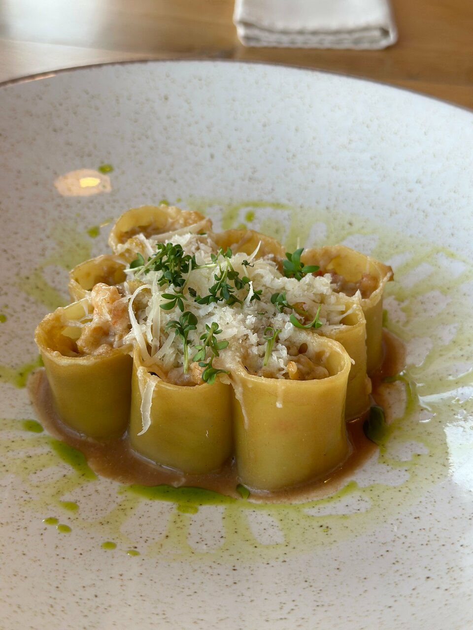 Очень симпатично, ухоженно, безумно вкусно в бистро, пицца — божественна! Улитки на любителя, а вот вино совсем не зашло, попробовали 3 разных и не наше((( Были в конце апреля Летом говорят там куча людей и надо бронить заранее