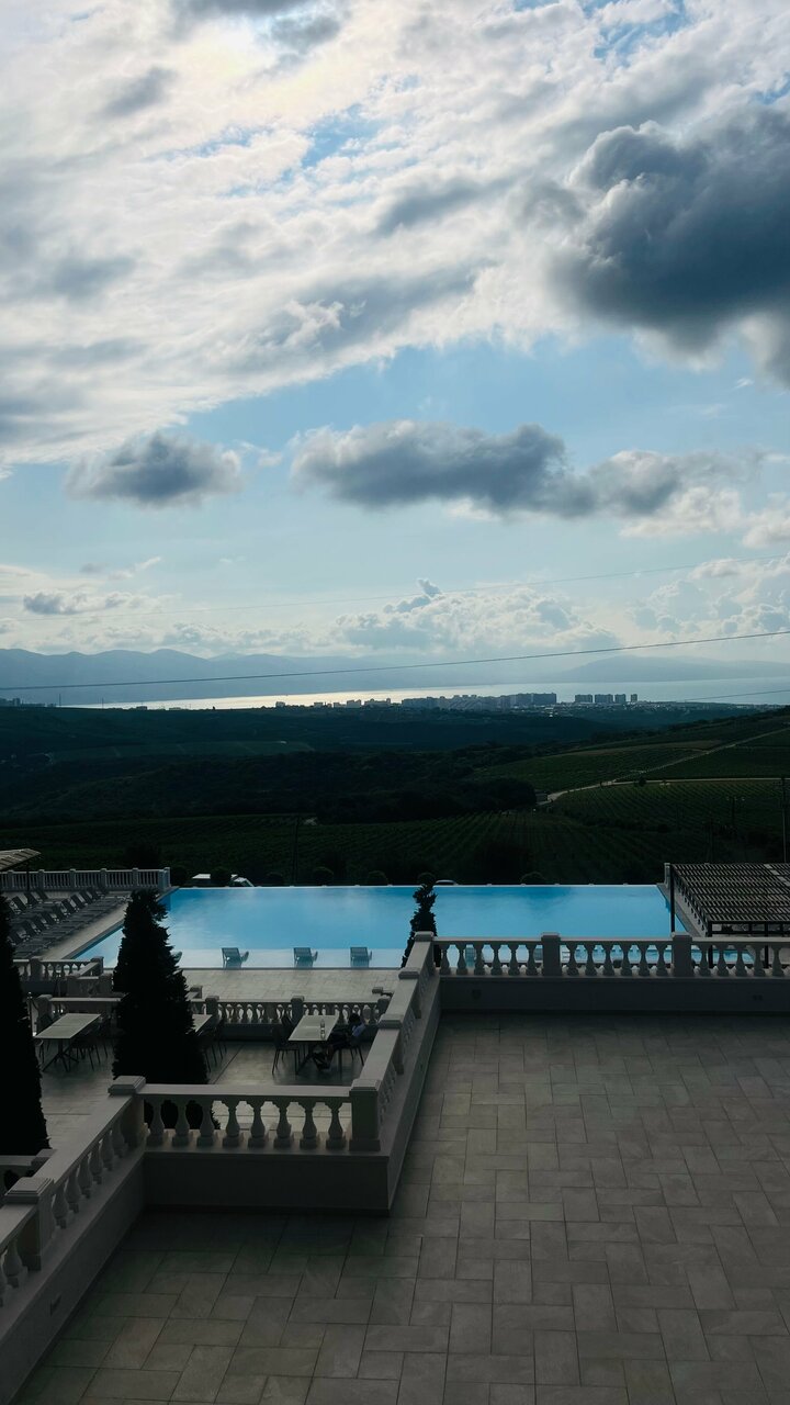 Прекрасный отель с живописными видами на природу: горы, виноградники, море.