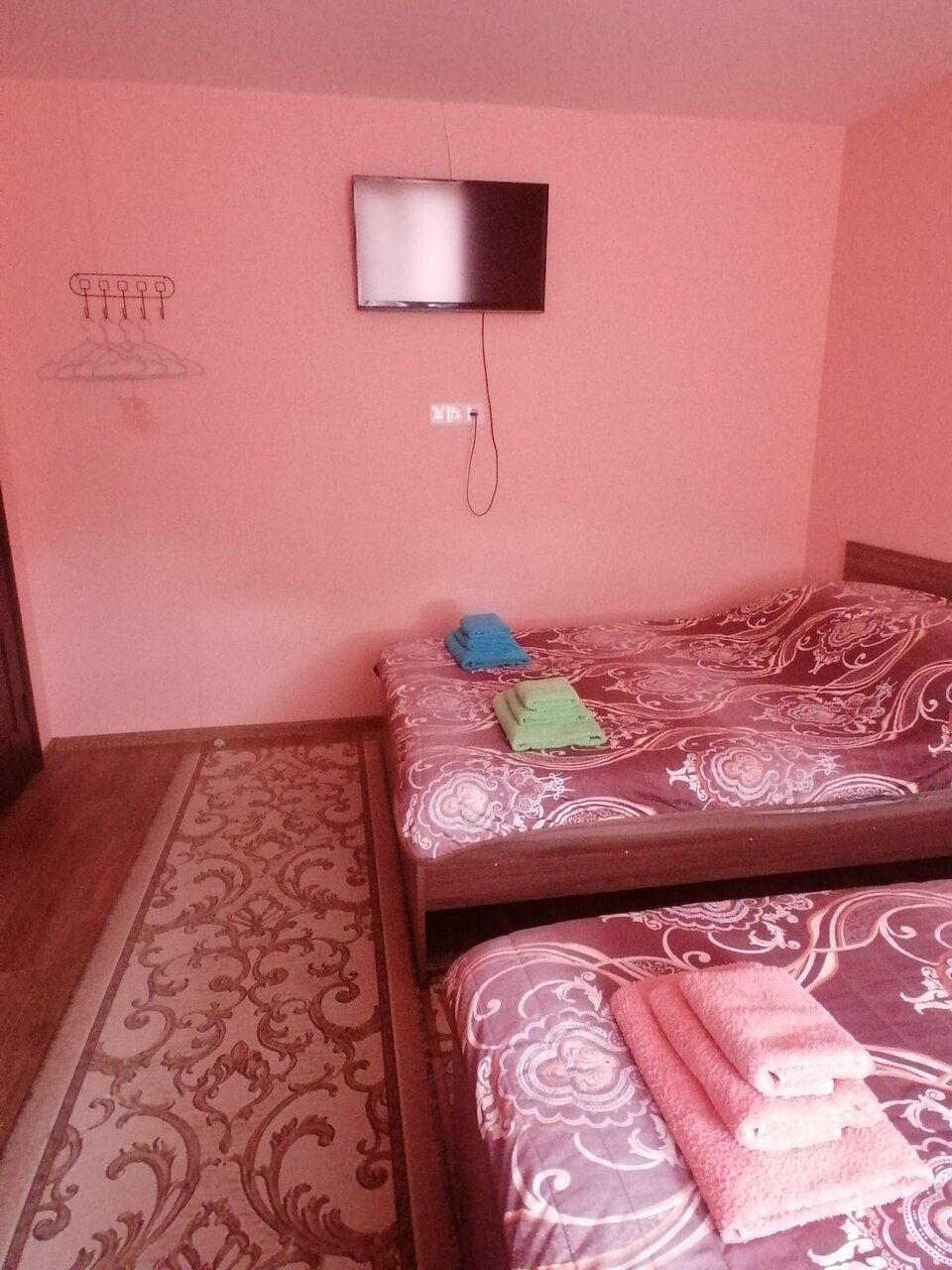 Для данной ценовой категории переночевать с дороги, принять душ и позавтракать — идеальное место!! Ехали из Крыма и поздним вечером у 7 отелей, которые я обзвонила было все забронировано, а тут приятный клиентоориентированный хозяин нашел для нас уютную комнату Встретил, взял в свою морозильную камеру наши блоки из сумки-холодильника на ночь, а утром ради нас поднялся в 5 утра. Низкий Вам поклон за такое добродушие Комаров в комнате не было (сетка на окне), прочей живности тоже, кондиционер, телевизор, новенькая микроволновка, на каждого гостя по 3 полотенца, холодильник, чайник, кружки — всё имеется в комнате. У нас душ и туалет были общие на 4 комнаты, не знаю как у других, может в номере. Парковка на территории А еще милые кошечки Спасибо Вам!