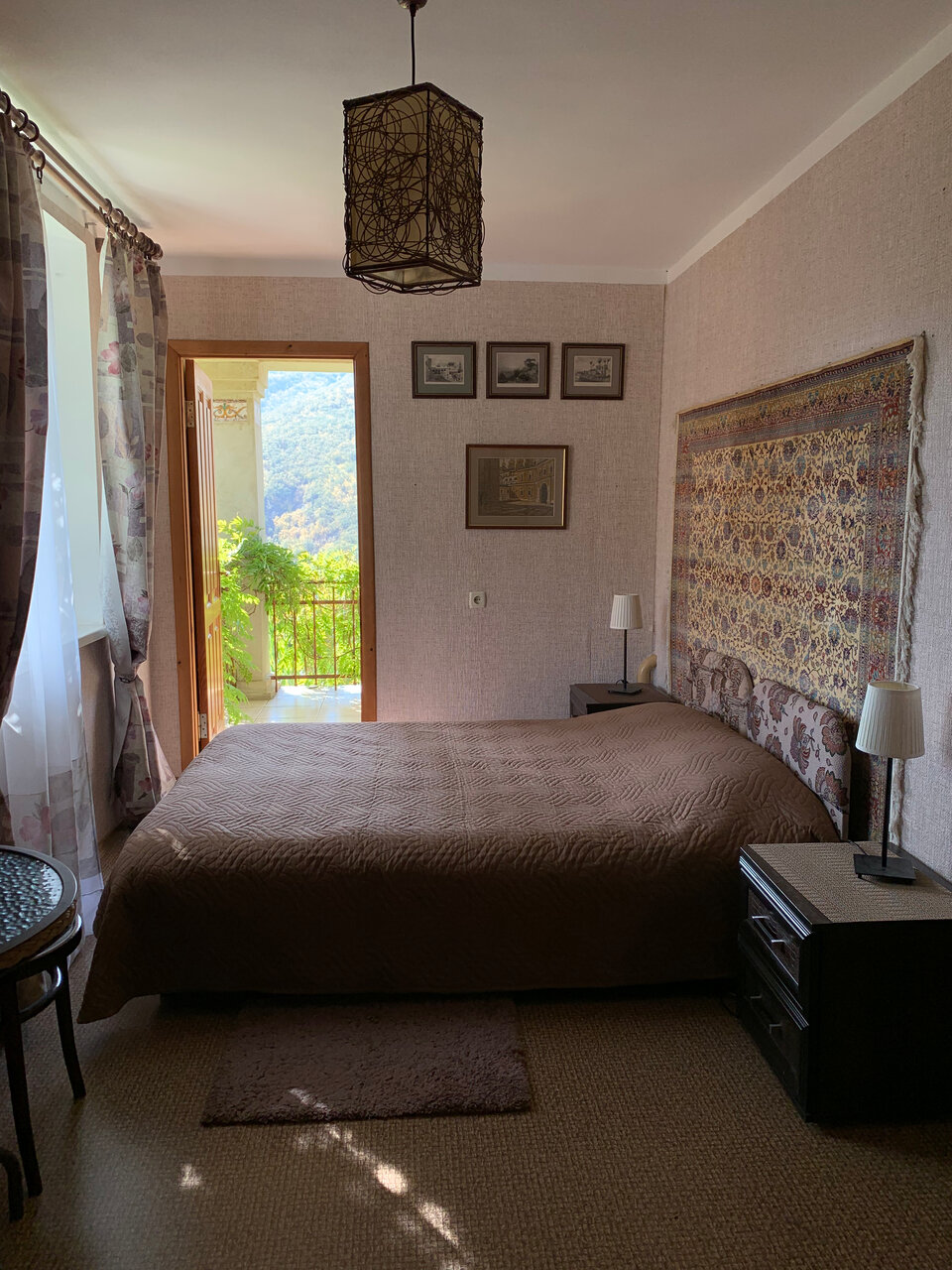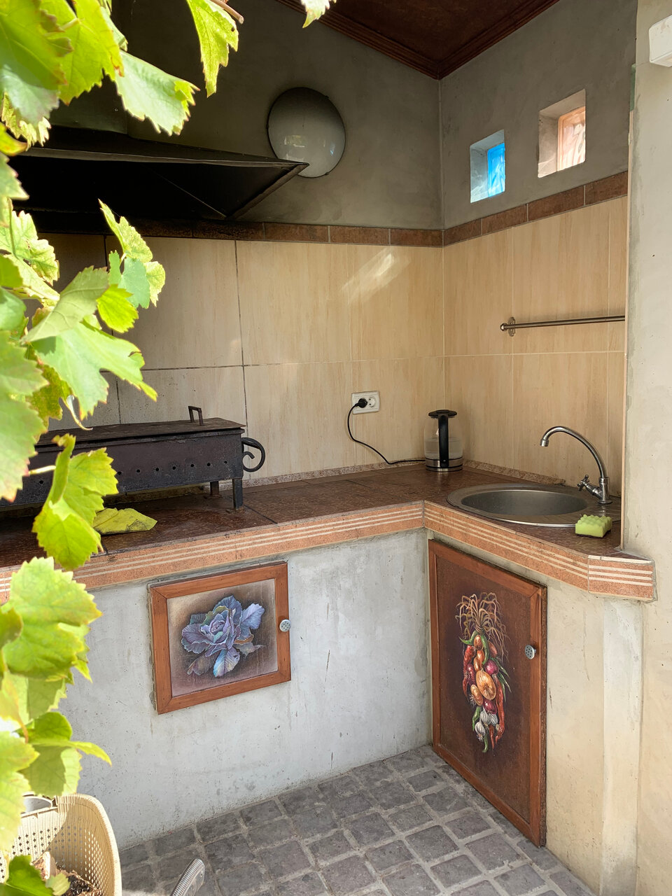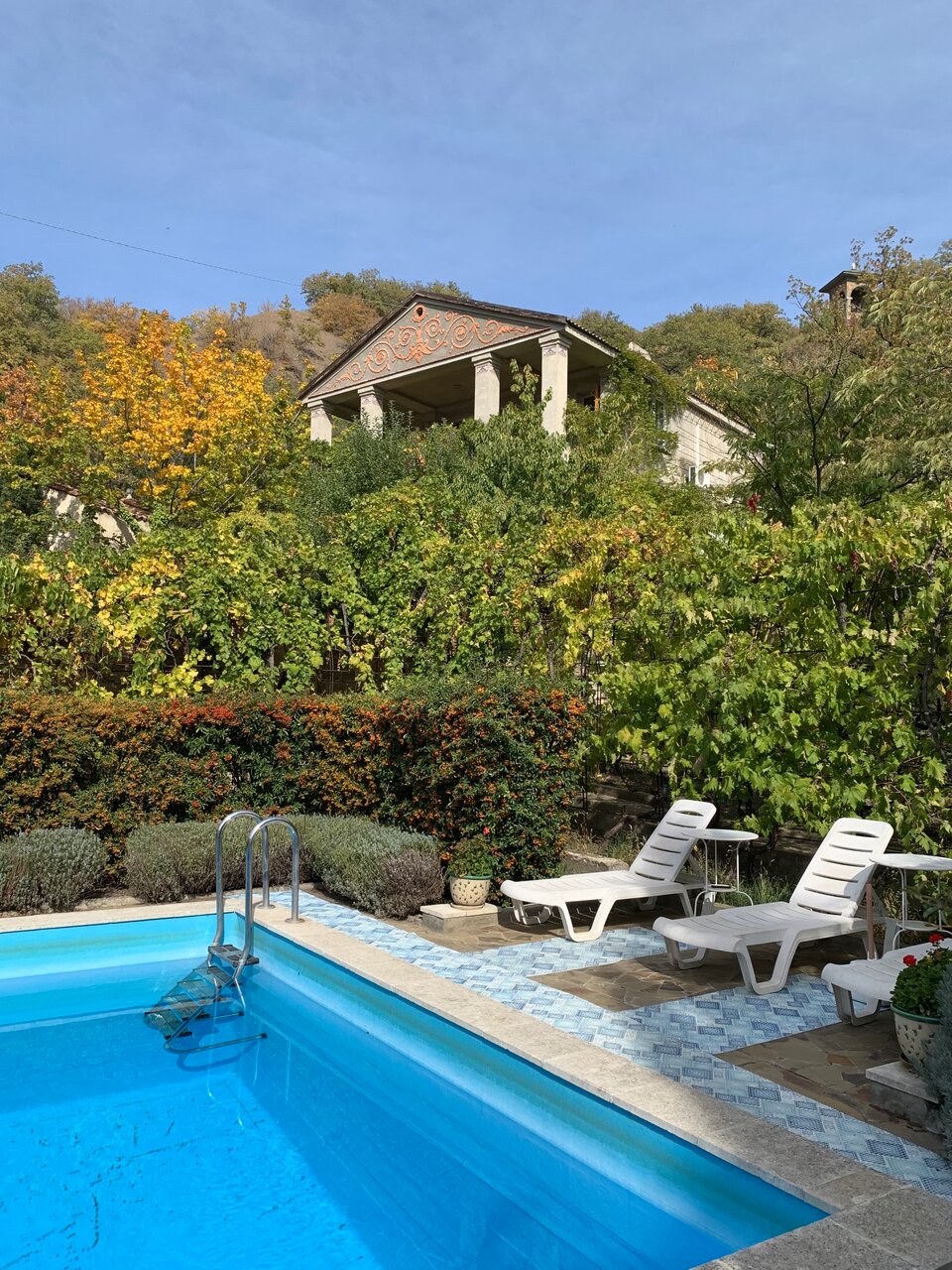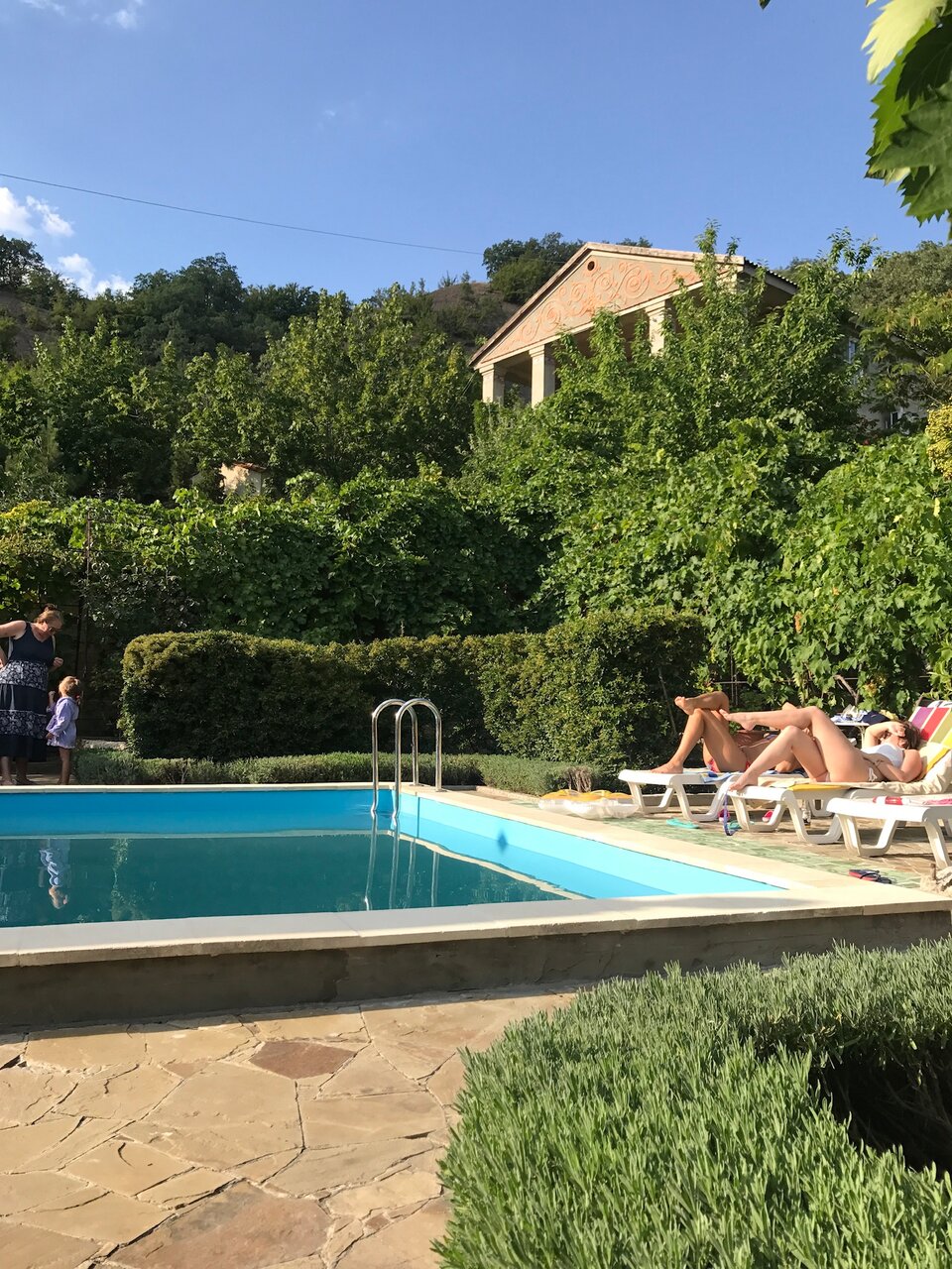 Отдыхали двумя семьями 5 суток в большом доме. Территория огромная и ухоженная, очень колоритно и зелено. Безумное получаешь удовольствие, просыпаясь под пение птиц и вдыхать запах свежести. Могу сказать, ваш мозг здесь выключается! Для комфортного отдыха есть стиральная машина, фен, утюг, гладильная доска, посудомойка, гарячая вода, микроволновка и так дальше. С любой стороны на этой территории потрясающие виды. А летняя кухня и бассейн с видовой площадкой — прекрасны! Вообщем место супер. Хозяйка и обслуживающий персонал отзывчивы. Рекомендуем!