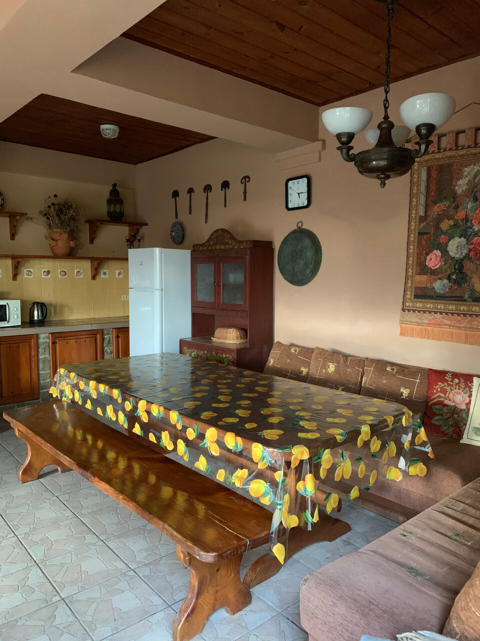 Этаж 90м2 с большой кухней-столовой со всей необходимой техникой, гостиная с камином и большим раскладным диваном, спальня с двухспальной кроватью, санузел с душем и отдельным гостевым туалетом.