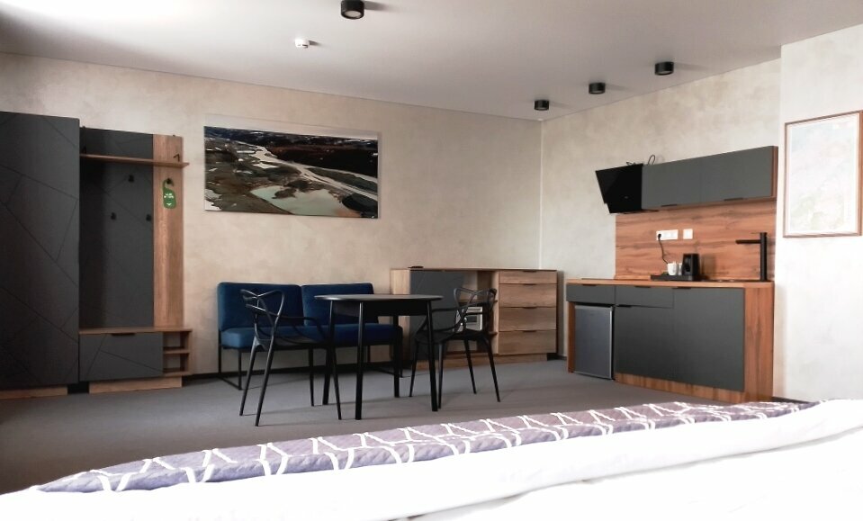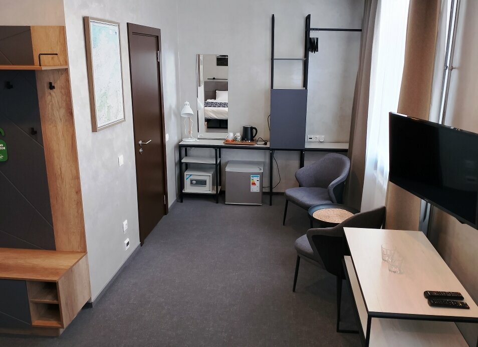 Может, он и единственный отель в этом городке, но быть единственным — зачастую соблазн и так поселитесь. Но не в этом случае. Обманчивая внешность (под стать городу) скрывает внутри дизайнерский отель. Уютные номера, стильный, уютный зал 1 этажа. Но душой этого места является Анна. Анна Николаевна. Человек, освещающий с первого шага внутрь отеля, создающий уют, ламповую атмосферу и обладающий невероятным обаянием. Решает все вопросы — даже взаимоисключающие. Волшебница и сердце этого далекого и с целом печального городка