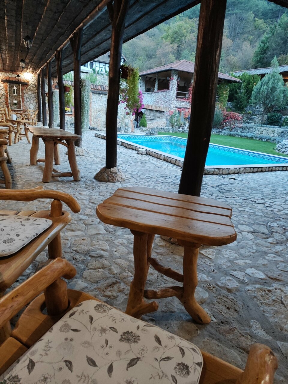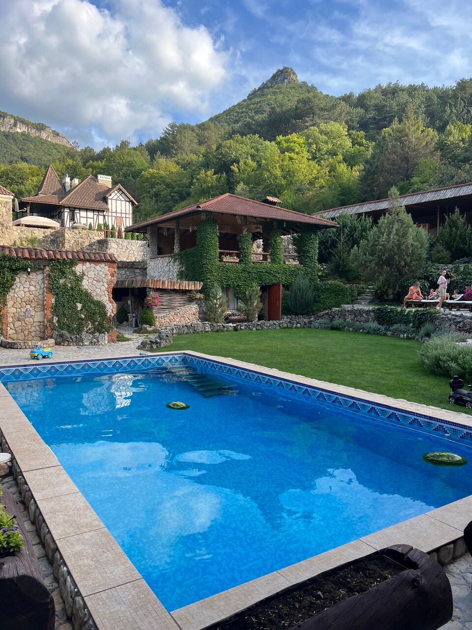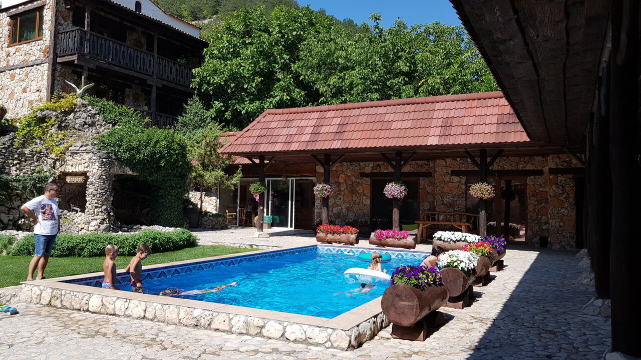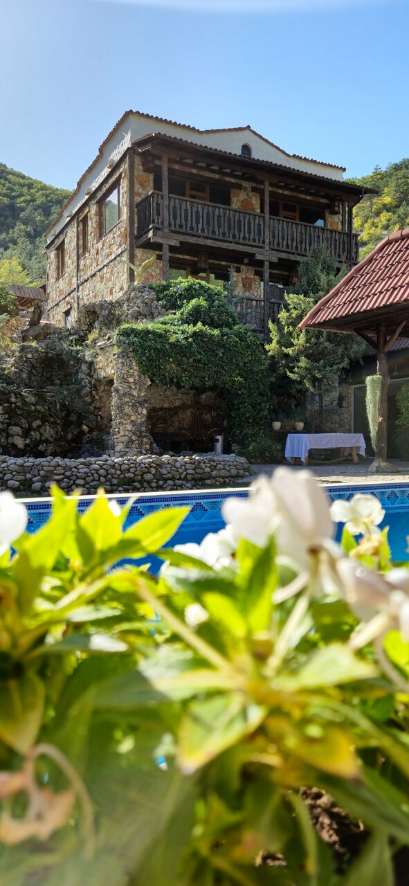 Красивое место, удобное расположение. На территории: бильярд, сайна, ресторан, беседки. Приятно украшено. Из отличительный особенностей отмечу, что хозяева не стали жадничать и лепить мелкие номера один на другой. За счёт этого активности, например бассейн, не перегружен. Минусом может быть то, что хозяева живут на территории с детьми, те могут шуметь.