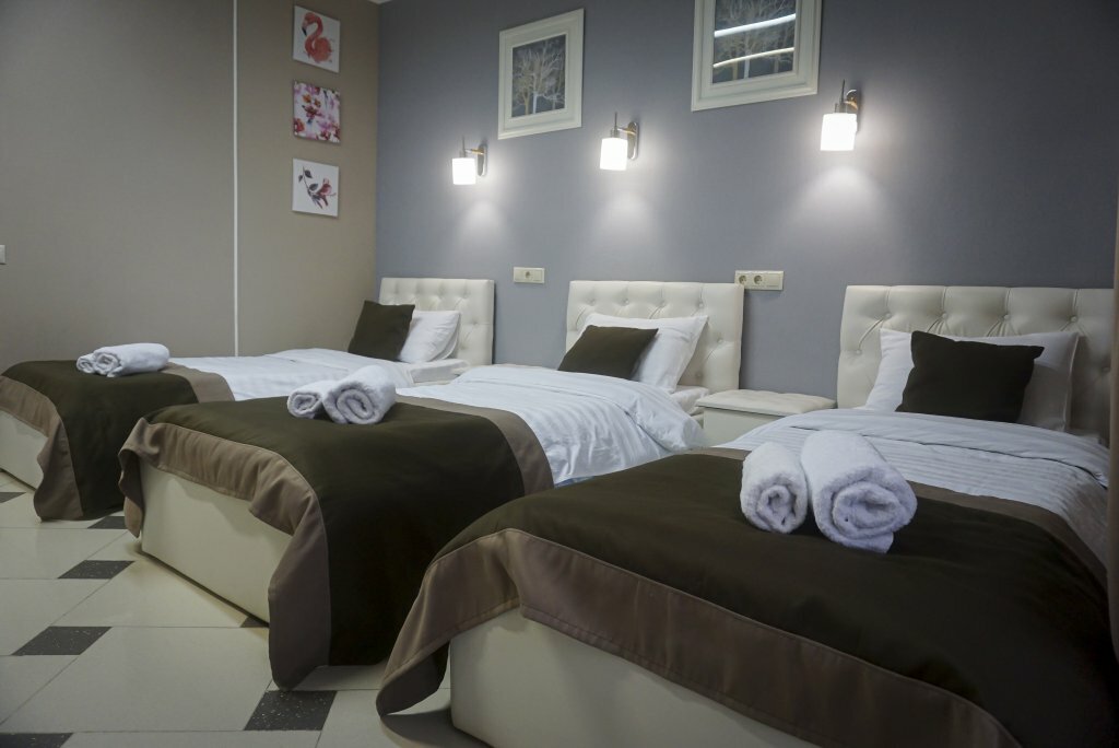 В номере: три одноместные кровати, холодильник, телевизор, набор для чаепития, полотенца