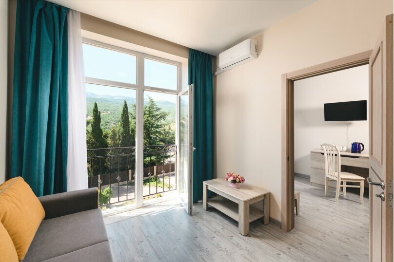Удобное расположение, 2 мин. езды от Алушты. Красивая территория вокруг кипарисы, ели, шикарный вид на горы. Номер чистый, новая мебель. Гостеприимно и уютно, обязательно вернусь повторно.