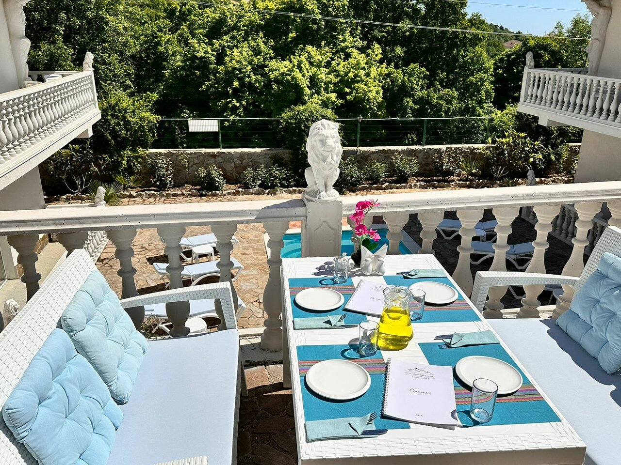 Место шикарное, доехать на автомобиле уже приключение, вид на море, рядом горы, номера большие, чистые. Душевая, без идиотских кабинок, от бассейна дети в восторге! Готовят вкусно, но долго, за неделю привыкли. Кто без машины, есть развозка. Если для кого-то принципиально, то и постояльцы все были порядочные, с детьми. Из особенностей, отсутствие стульев в номере, расположение телевизора. Разбитый бокал стоил мне 1000! (может так везде, не знаю). Ужинали на улице, а освещение там отсутствует, ну и зацепил, в полумраке, случайно бутылкой вина. Персонал приветливый. Если вдруг окажемся там снова, только туда.