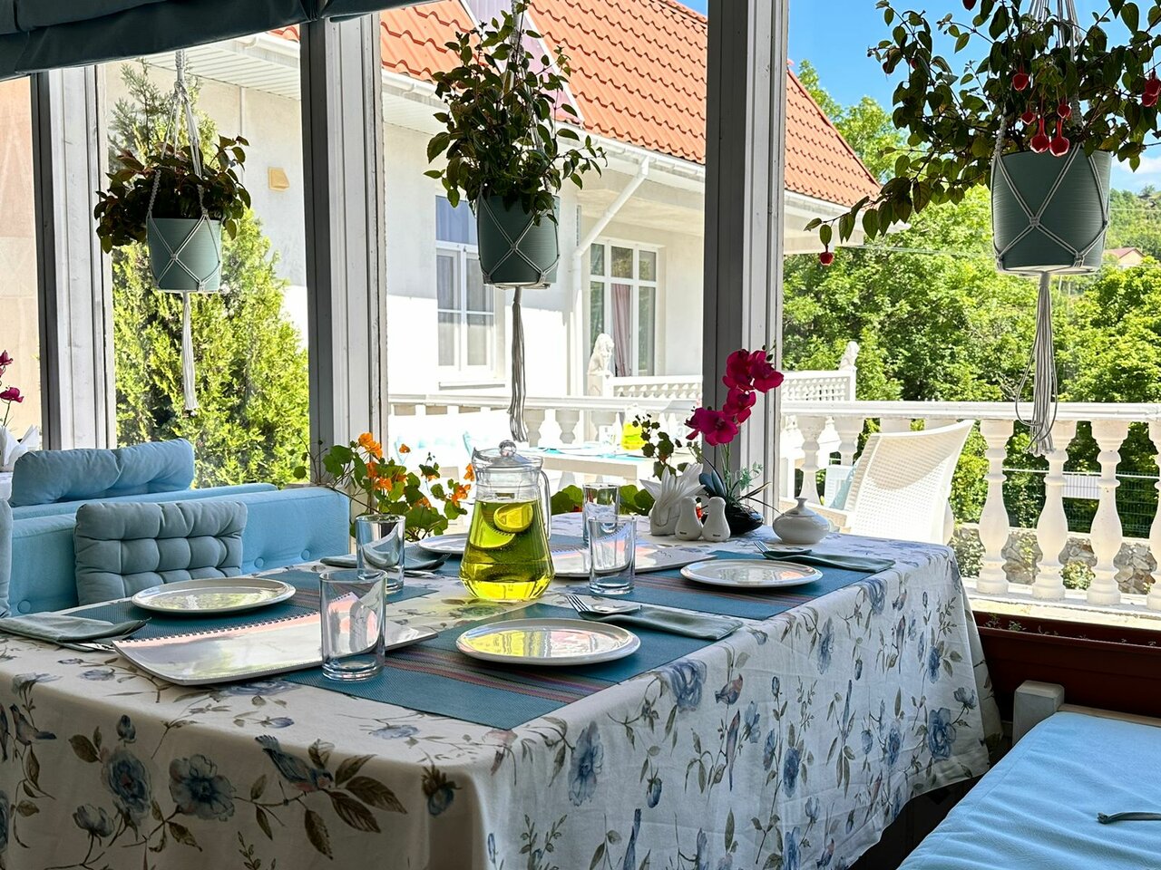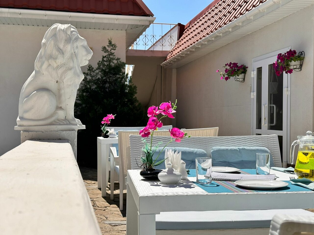- Доброжелательный персонал и семейная атмосфера.; Ухоженная территория, красивое оформление (розы, ароматы).; Трансфер до моря и аэропорта.; Баня с высокой температурой (до 150°C).; Вкусная еда из фермерских продуктов.