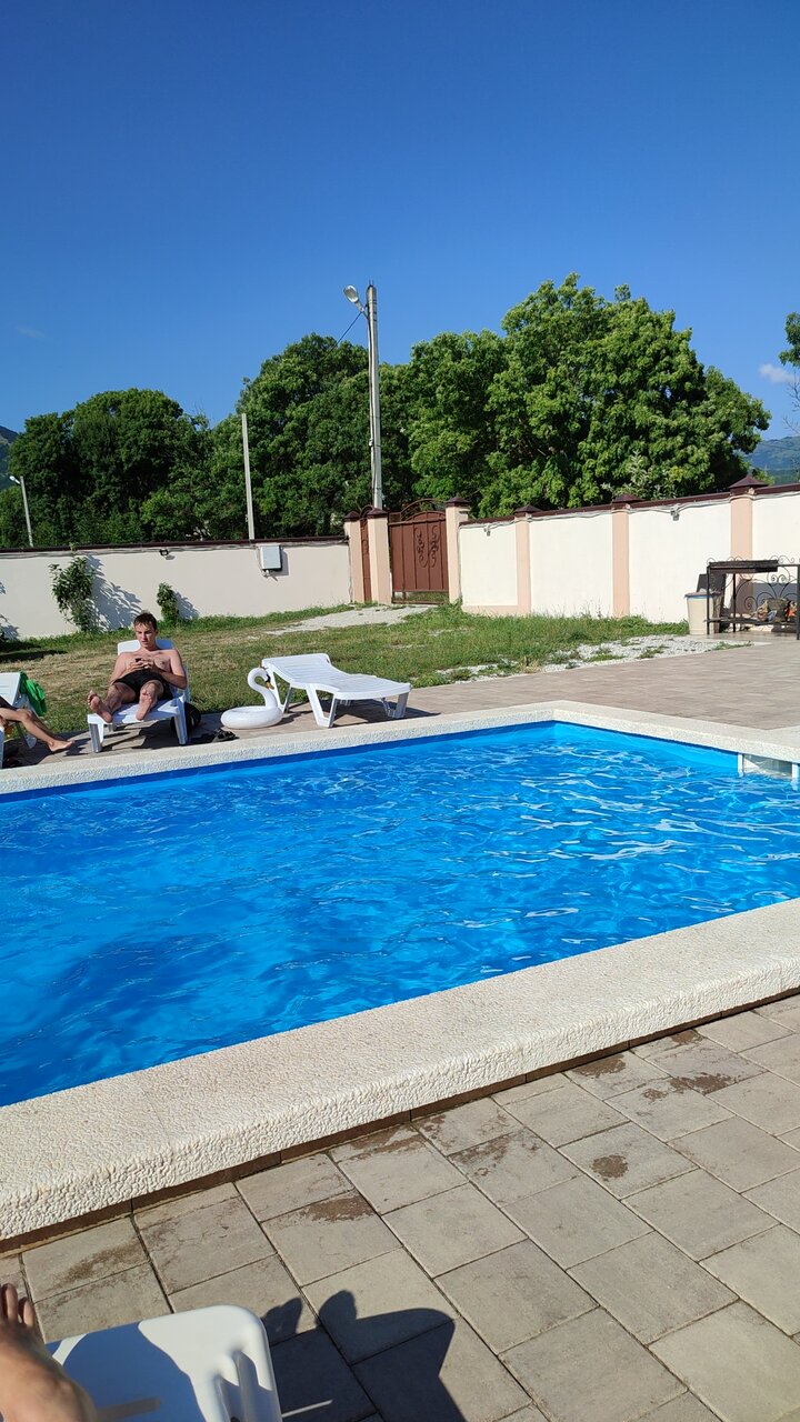 Отдыхаем уже второй год в этом гостевом доме. Хозяева принимают как родных. Встретили на ж/д вокзале. На территории всегда чисто. Комнаты очень уютные, чистые. Бассейн теплый, чистый. На территорию посторонних не пускают. Короче, всем советую, не пожалеете.