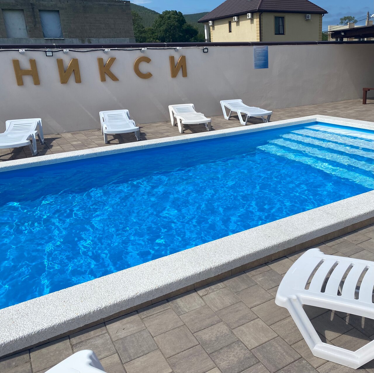 - Подогреваемый бассейн с прорезиненной лестницей.
