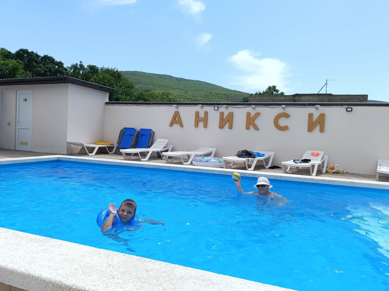 Замечательный гостевой дом Аникси. Гостеприимные хозяева Фатима и Никос. Все фотографии с сайта соответствуют действительности Территория гостевого дома ухоженная, всегда чисто. На территории бассейн с чистой, тёплой водой, мангал, зоны отдыха, детская площадка. Стоянка для авто. Шикарная, чистая кухня, со всем необходимым для приготовления пищи. Бокалы, тарелки, ложки всего в достатке, не было такого, что бы пришли и чего-то, кому-то не хватило В самом гостевом доме шикарный, современный ремонт. В номерах все необходимое кондиционер, холодильник, телевизор. Также есть баллончик с шикарным видом на горы.. Отдыхаем здесь уже второй раз. Надеюсь не последний, сюда действительно хочется вернуться. От души всем рекомендую. Спасибо за такие прекрасные условия для хорошего отдыха Фатиме и Никосу. Желаю вам успеха и процветания, и благодарных отдыхающих. И отдельное спасибо горничной Оле за её труд. Рекомендую.