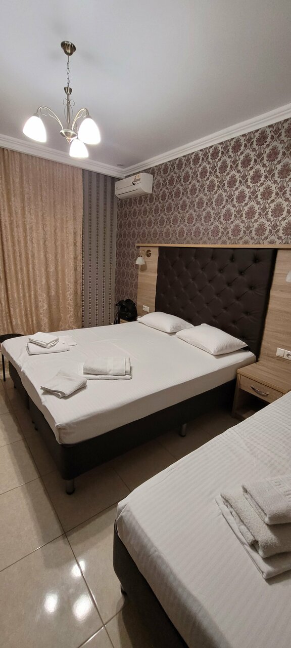 Отель новый, в хорошем состоянии как внешне, так и сами номера. Номера уютные, в целом хорошие. Уборка номера производится по требованию, но качество уборки зависит от горничной, и раз на раз не приходится! Но за такие деньги сложно требовать большего. Кухня хорошая, официантки приветливые и доброжелательные, повара готовят вкусно, но завтрак, входящий в стоимость, за 13 дней приелся своим однообразием! Ребята подумайте над расширением ассортимента! Еще из минусов стоит отметить скользкую плитку у входа в отель, после дождя она превращается в каток! Самым большим разочарованием оказался бассейн! За 13 дней пребывания не купались с супругой в нем ни разу, а ребёнку запретили на 5 день, потому что бассейн превратился в болото, которое почистили только перед самым отъездом, при этом 2 дня бассейн был вообще закрыт. И стоит добавить, что до моря дорога занимает от 15 минут! Но минусом это не считаю!))) хозяев отеля желаю позитивного развития! В целом хорошо!