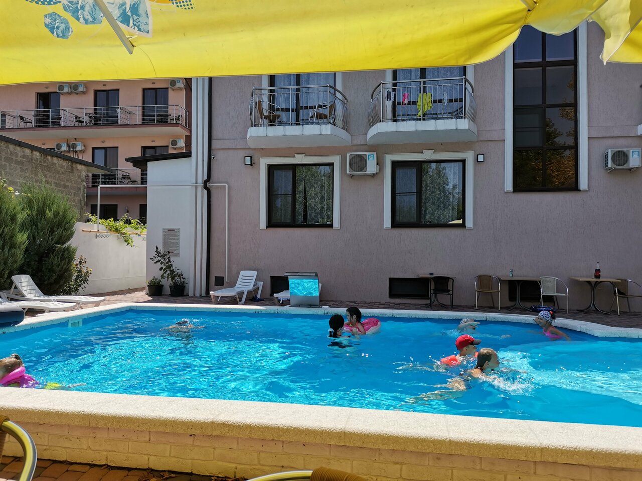 Всё очень понравилось, внимательный персонал, большой бассейн с подогревом ,уютные и чистые номера ,до моря 8-10-минут пешком неспешным шагом.