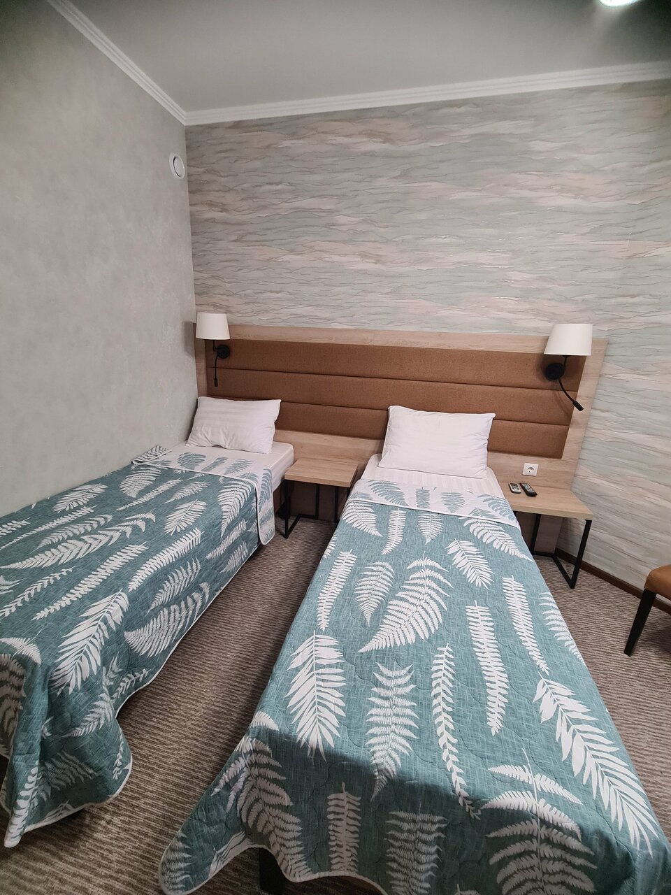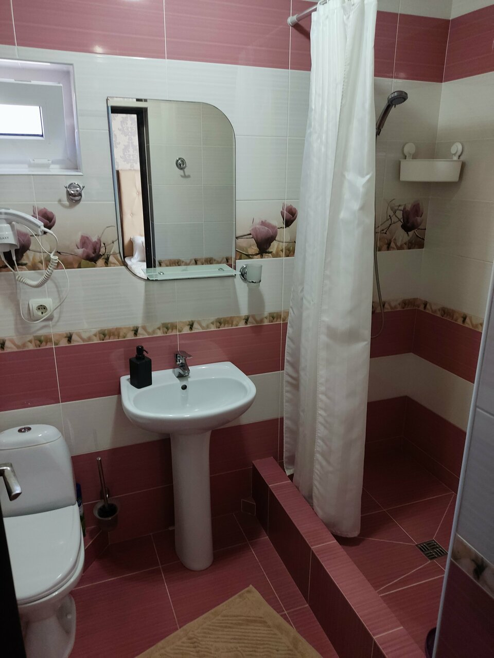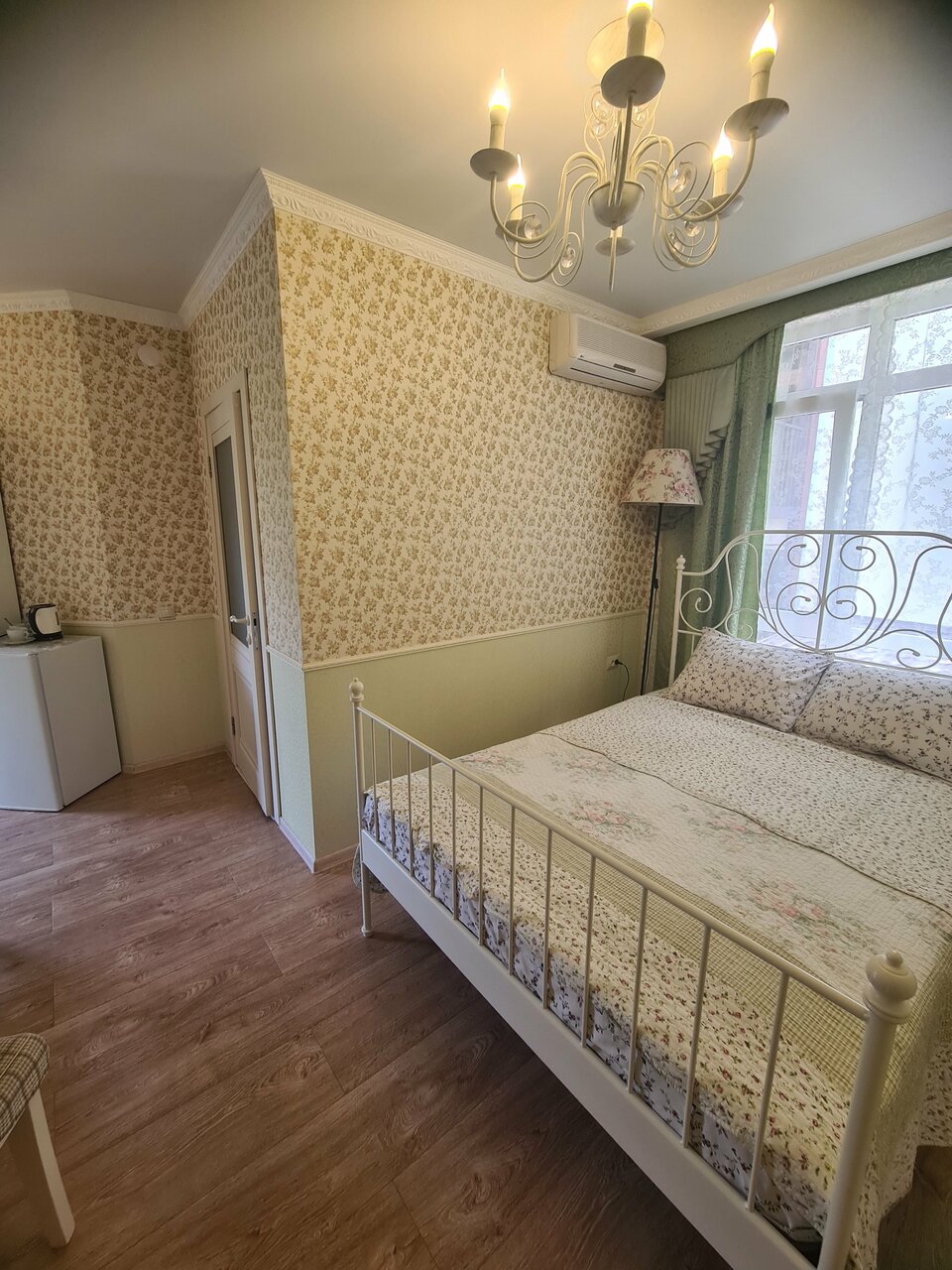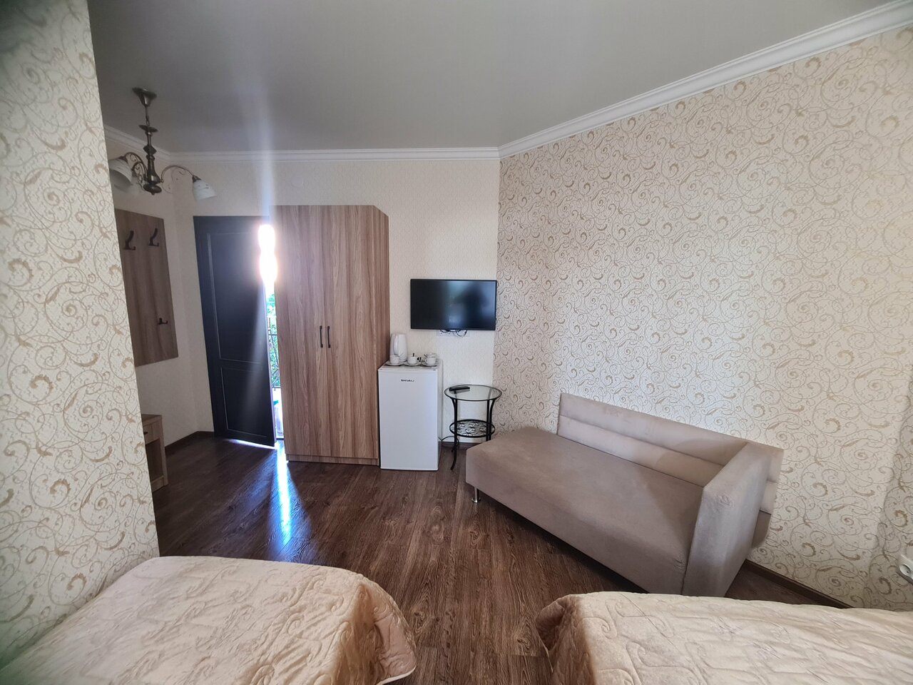 Июль 2019. 2 взрослых, 2 детей, 2 комнатный номер. В номере отличный современный ремонт, сейф, чайник, холодильник, в каждой комнате телевизор, кондиционер, туалет, душ, большой балкон, чисто, уютно, просторно. Ухоженный зелёный двор. Есть место для парковки авто. 5-7 минут ходьбы до моря. Все очень понравилось.
