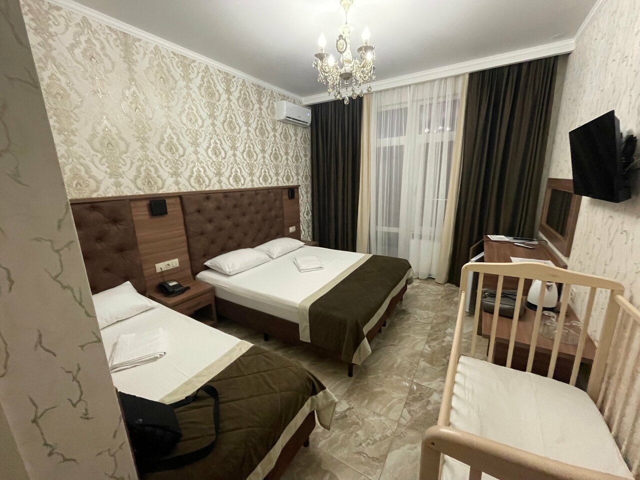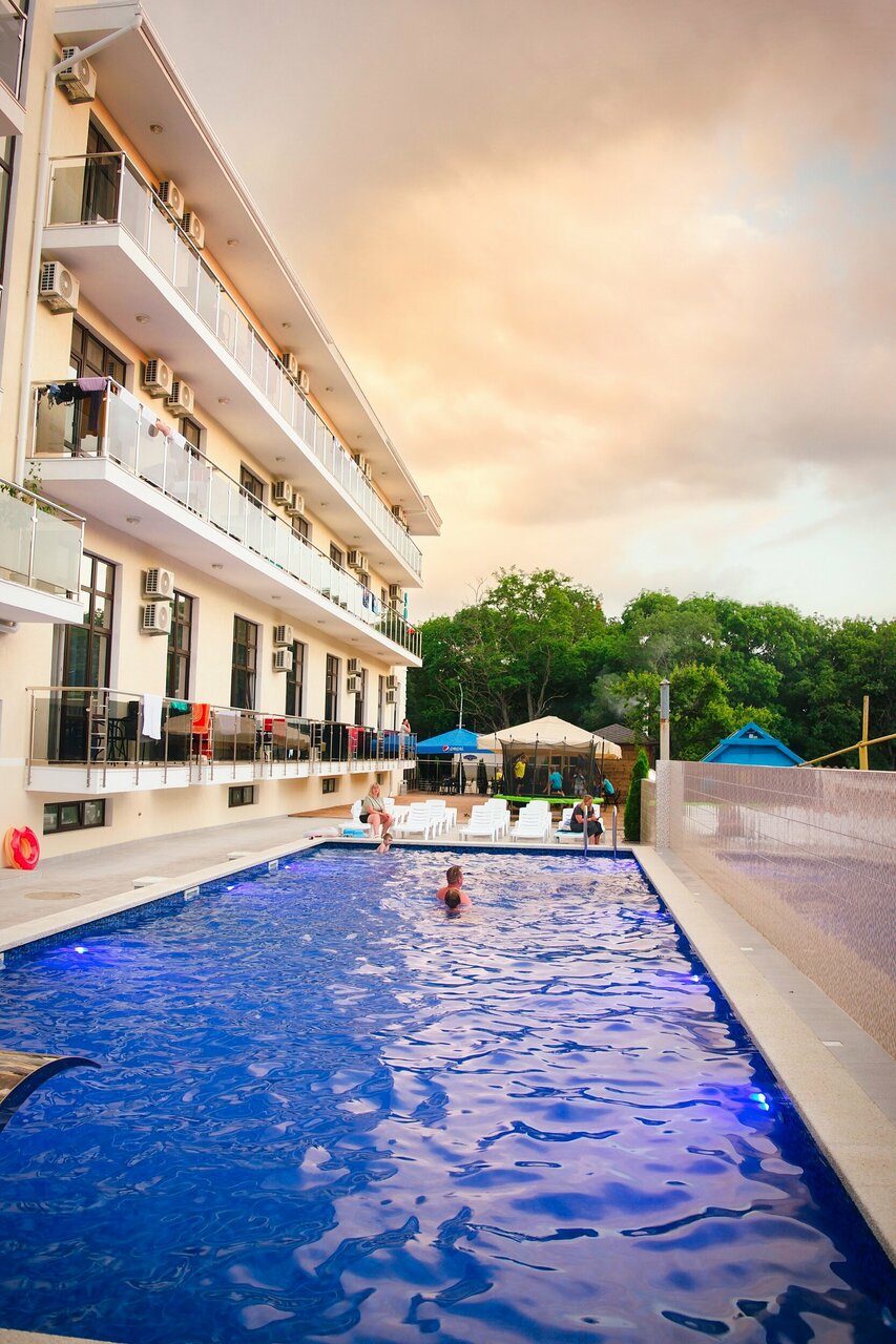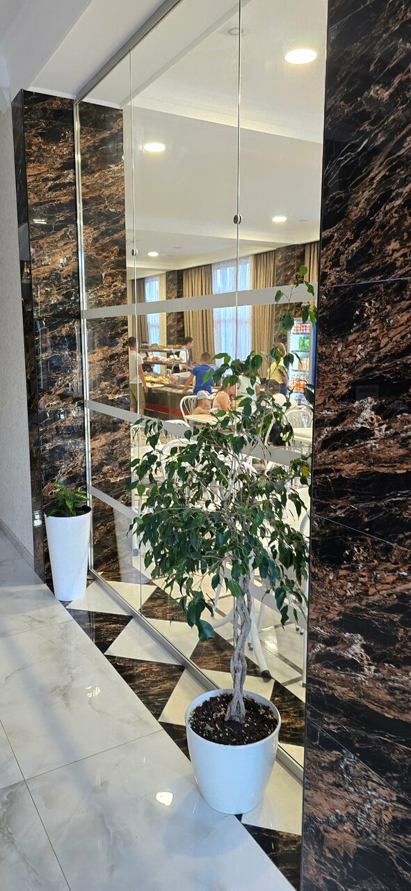Отдыхали (семья из трех человек ) в этом отеле с 01.07 по 20.07.2023. Отличный трех-местный номер, новая мебель, чистота, уборка номера каждый день. Смена полотенц -постоянно , постельного белья каждые 5 дней . Не мало важно -для авто есть подземная парковка. Приветливый, добродушный, отзывчивый персонал. В столовой ВСЁ очень вкусно. Бассейн — чистейший, постоянно чистили, дезинфицировали. На территории отеля -бар, можно заказать вкуснейший шашлык, напитки и тд. Анимация два раза в неделю, малышня веселилась вовсю (нашему 9 лет). До моря идти 10 минут, не больше . Отдыхали с большим удовольствием, обязательно вернемся! РЕКОМЕНДУЮ от всей души!!!
