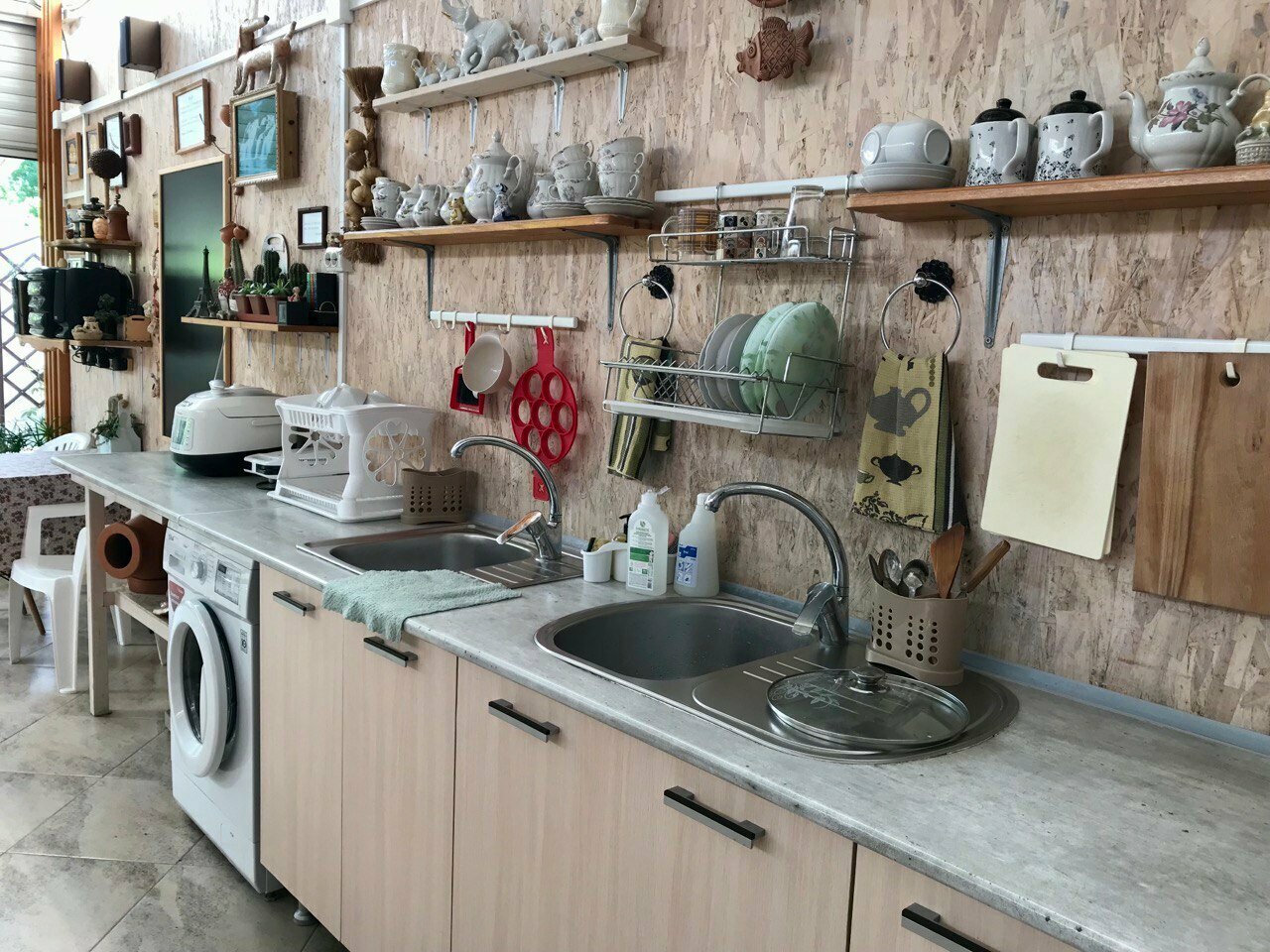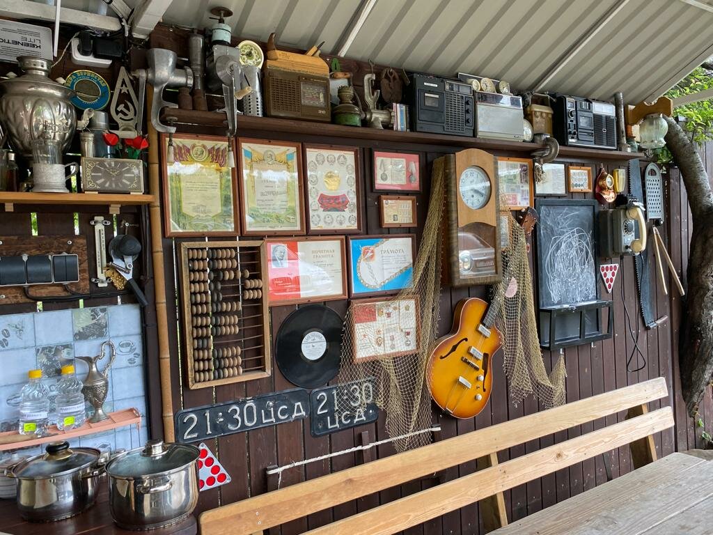 - Большая летняя кухня с полным набором техники (плита, микроволновка, кофеварка, хлебопечь и др.).