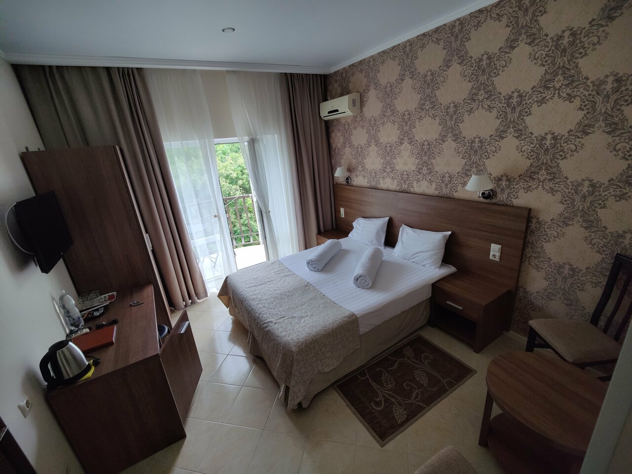 Хороший, красивый отель! Приемлемые цены, номера в виде комнат очень маленькие, но уютные, кондей хорошо работает. Номера в виде домов потрясающие, каждый со своей беседкой. Есть большой бассейн, вкусная и недорогая столовая. Рядом с отелем хороший ресторан натюрлих, готовят быстро — выбор блюд большой. До моря в среднем 15 минут пешком, по жаре, конечно, тяжело подниматься в горку, но общее впечатление не портит, не успеваешь наесть бока благодаря такому фитнесу.))) Из минусов были недочеты по уборке номера, но тоже оперативно устранили, персонал реагирует на просьбы. Также, вода,чай,кофе в номер — это разовая акция. Гель,шампунь нам положили только один раз по приезду. Включённый завтрак работает по своеобразному комплексу. Но в целом, Если не пугает не шаговая доступность к морю — советую! Место отличное! Очень красивый вид) Из достопримечательностей рядом старый парк, ничего необычного — но посмотреть можно)))