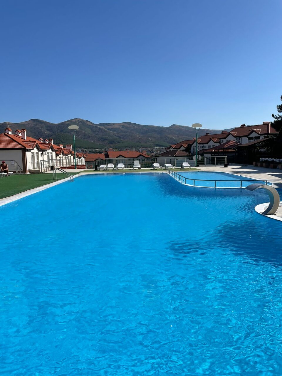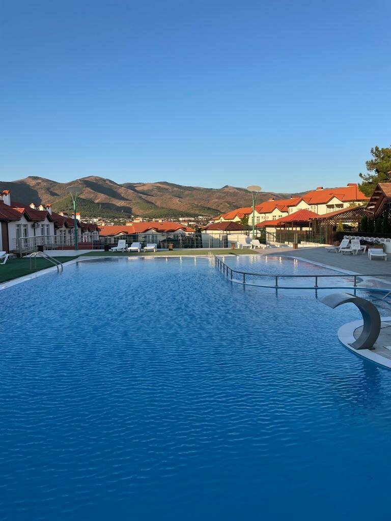 Приезжайте сюда, не пожалеете. Свой бассейн на территории, до моря идти по короткому пути 15 минут. Комплекс грамотно сконструирован, свои парковки возле каждого домика, закрытая территория. Рядом лучший ресторан в Кабардинке ‘Натюрлих’. Рядом столовая с заказным меню. В каждом домике своя кухня с зоной для мангала. Мангал в наличии. Хорошего отдыха.