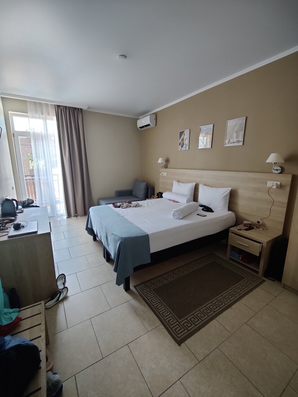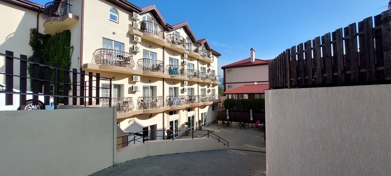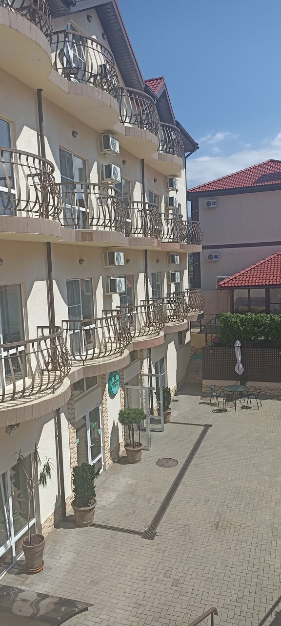 Отдыхали семьей с 15 июня по 22 июня 2023 г. Номера чистые, все необходимое есть в номере, завтрак не шведский стол, но голодными не останетесь. Пообедать и поужинать можно в кафе при отеле: цены приемлемые, очень вкусные супы. Есть собственный бассейн: чистый, удобный для маленьких детей. До моря минут 10 прогулочным шагом.
