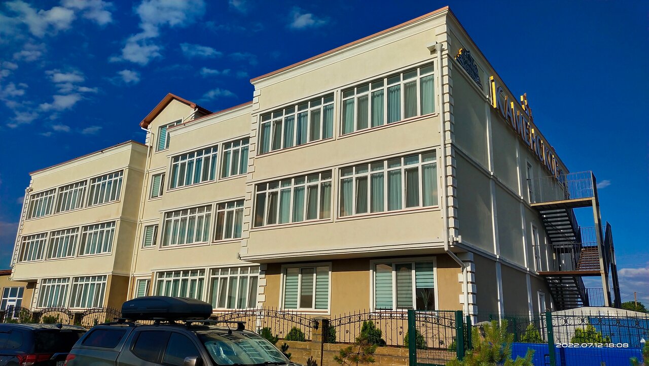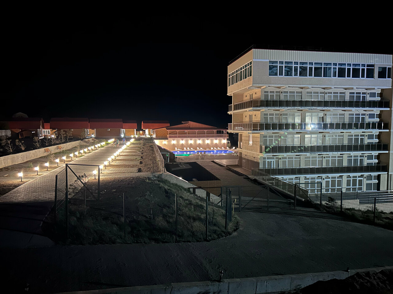 Отель новый, свежий — большой плюс. Отдыхали в конце августа — начале сентября — народу было мало. Но! По словам сотрудников летом в сезон было все забито и были очереди за едой. Да и зонтов на пляже не много, всем не хватит. Если ещё новый большой корпус откроют — вообще непонятно, что получится, будет все забито как на городских пляжах Феодосии, видимо. Жаль, тк приехали именно за тишиной и отсутствием народа. К еде особых претензий нет, все хорошо, были сыты. Бассейн — большой плюс, особенно в плохую погоду. По анимации — примитивненькая под конец сезона была, на полчасика в день, но детям нравилось. Есть детская комната, небольшая. Как она будет забита в сезон — не знаю. Рядом ничего интересного нет, гулять негде. Сим-карту с хорошим тарифом лучше купить в Керчи или Феодосии в салоне связи именно.