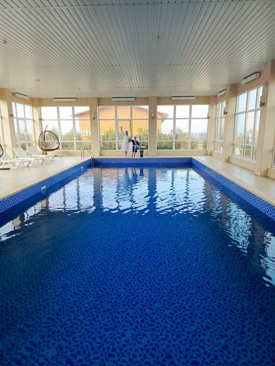 Отдыхали в конце августа 2021 г. семьей 4 чел. (2 дочки 9 и 12 лет). Очень чистый и уютный отель. В номере постоянно поддерживался порядок, незаметно для нас. В ненастные дни спасал бассейн с теплой водой и спортзал с профессиональными тренажёрами и массажёрами. Отдельная благодарность персоналу кафе за внимательное отношение и очень вкусную и разнообразную кухню. Шведский стол + лёгкий алкоголь: вино и пиво. Территория небольшая, но вся красота в окружающей природе. На Азовском море были первый раз, мы успели покупаться 4 дня, в остальные был ветер, прибитые медузы и водоросли. Пляж просторный с достаточным количеством шезлонгов. Сотрудники отеля ежедневно убирали пляж от выброшенных на берег морских обитателей и мусора. Анимация, как правило, для самых маленьких детишек. В итоге отель оставил однозначно положительное воспоминание обо всём, что в нем происходило и мы пожелаем коллективу успехов и побольше креативных идей по устройству досуга отдыхающих.