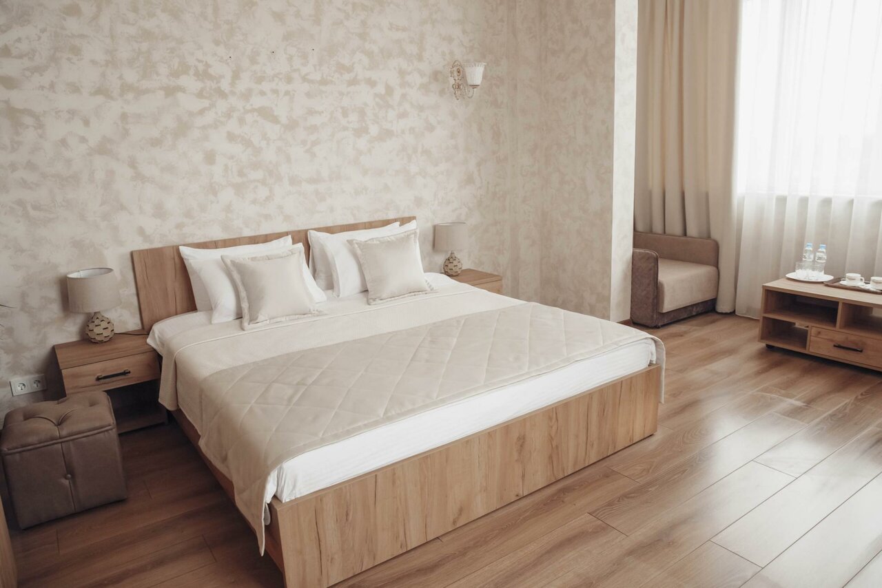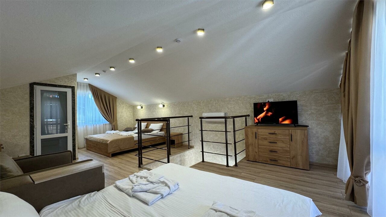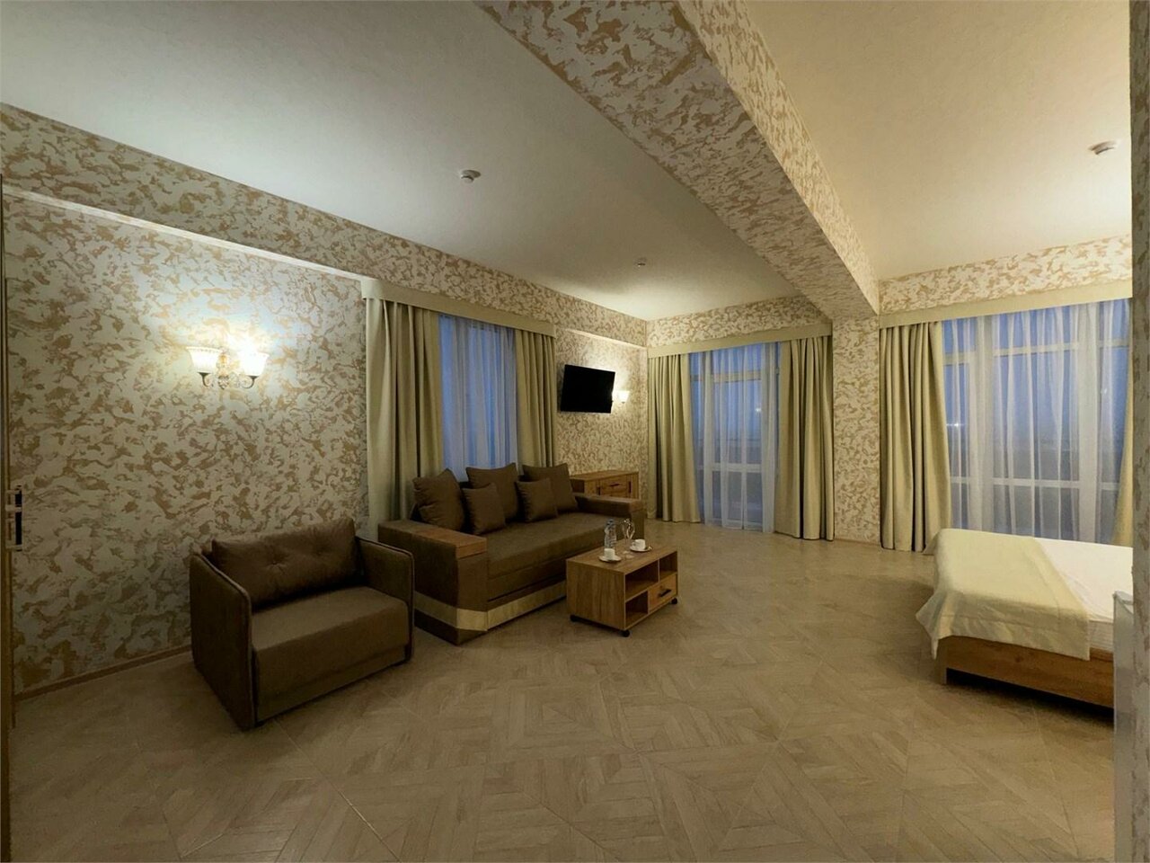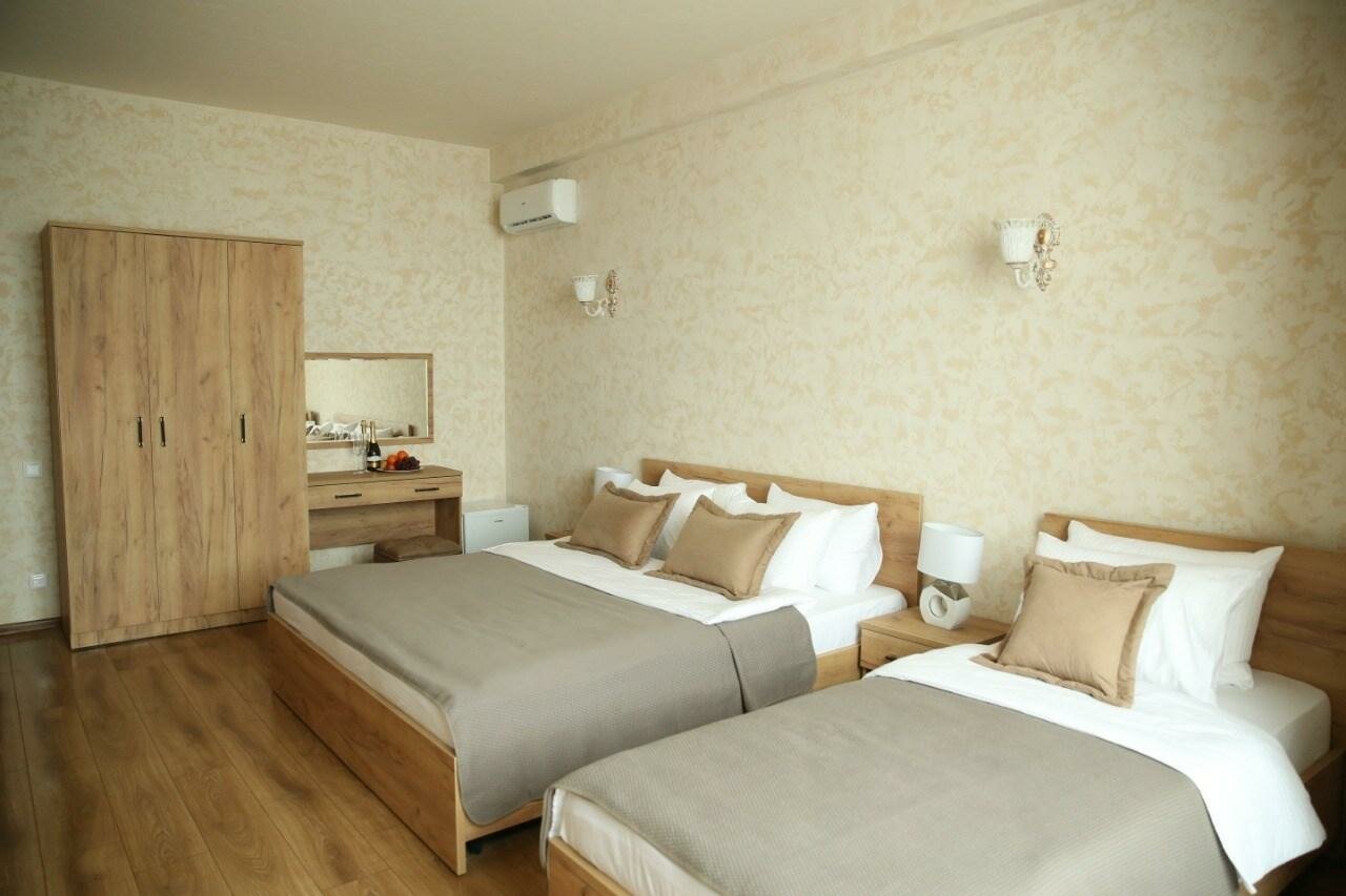 Отель очень хороший, номера большие, чистые, есть одноразовые тапочки, халаты. Очень удобные доп. места для детей. Шведский стол не большой, но очень вкусный, всегда наедались . Бассейн с чистой водой , тёплый. Шезлонги на территории , чтобы позагорать после бассейна. Батутный комплекс для детей, детская площадка. До моря 3 минуты. Море Азовское поэтому может преподнести сюрпризы ( медузы, течения и т.д.). Персонал вежливый, оперативно реагирует если есть какие-то вопросы. Однозначно советую !