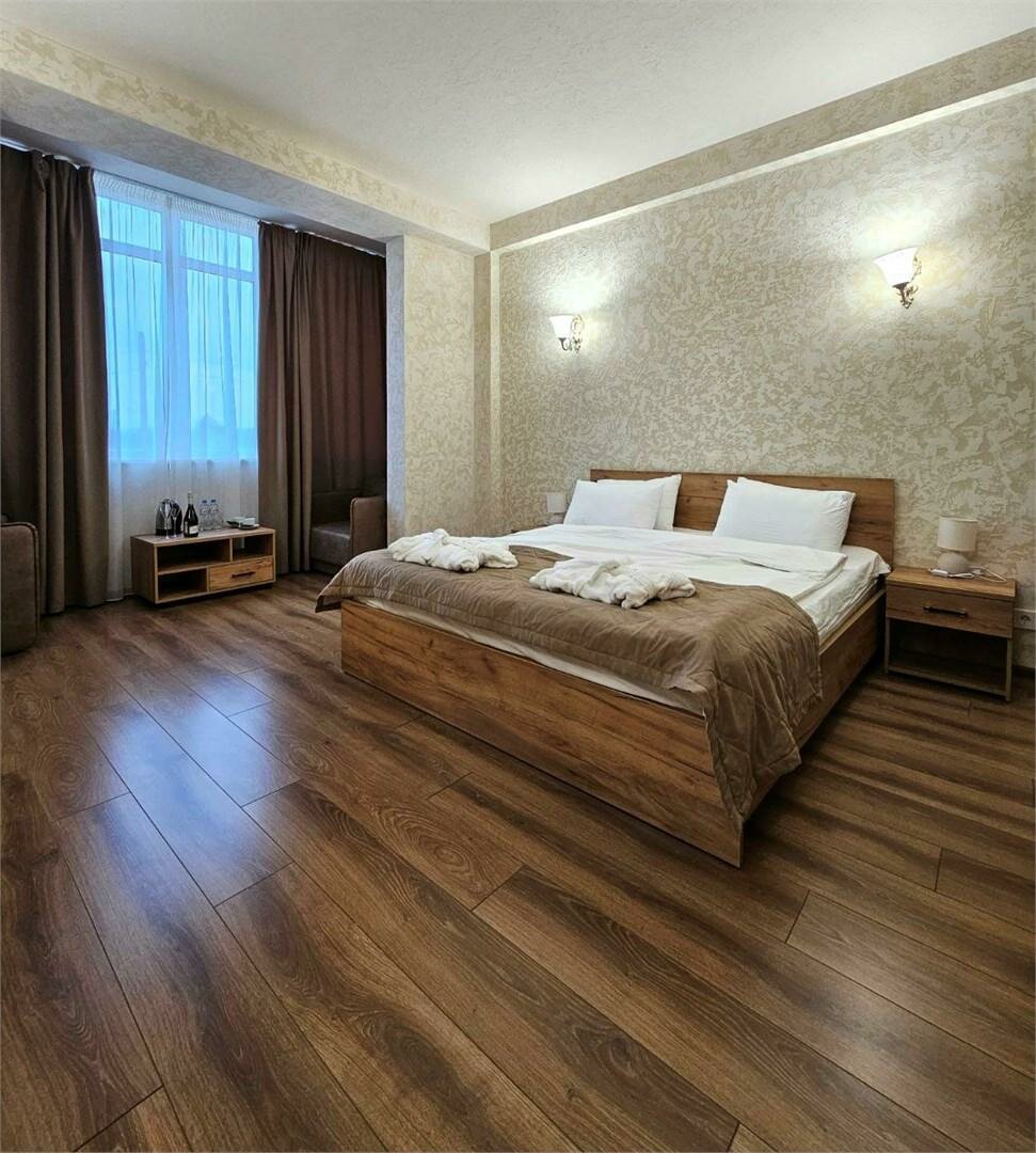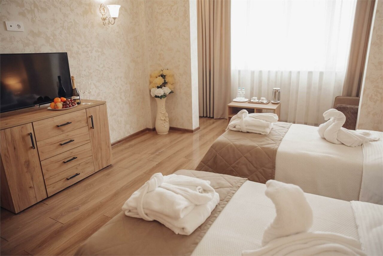 Доброго времени суток! Хочу оставить отзыв о данной гостинице. Были здесь в 21 году, когда гостиница только открылась. Нам все очень понравилось, не придерешься ни к чему. В этом году (24) решили снова приехать именно сюда. Путь из Москвы не близкий, но это того стоит. Дети с теплом вспоминали это место. Что порадовало меня, так это цены на бронирование(дают скидку при регистрации на их сайте). Все включено, анимация, бассейн крытый, тренажерный зал, белоснежное постельное белье, халаты, полотенце, чистые, уютные номера со всем необходимым, и конечно приветливый персонал. Прислушиваются ко всем пожеланиям и просьбам. Отдельное спасибо администратору Екатерине. Очень любит свою работу и заботится о всех отдыхающих. В отеле очень любят детей и стараются для них. Спасибо Вам большое.