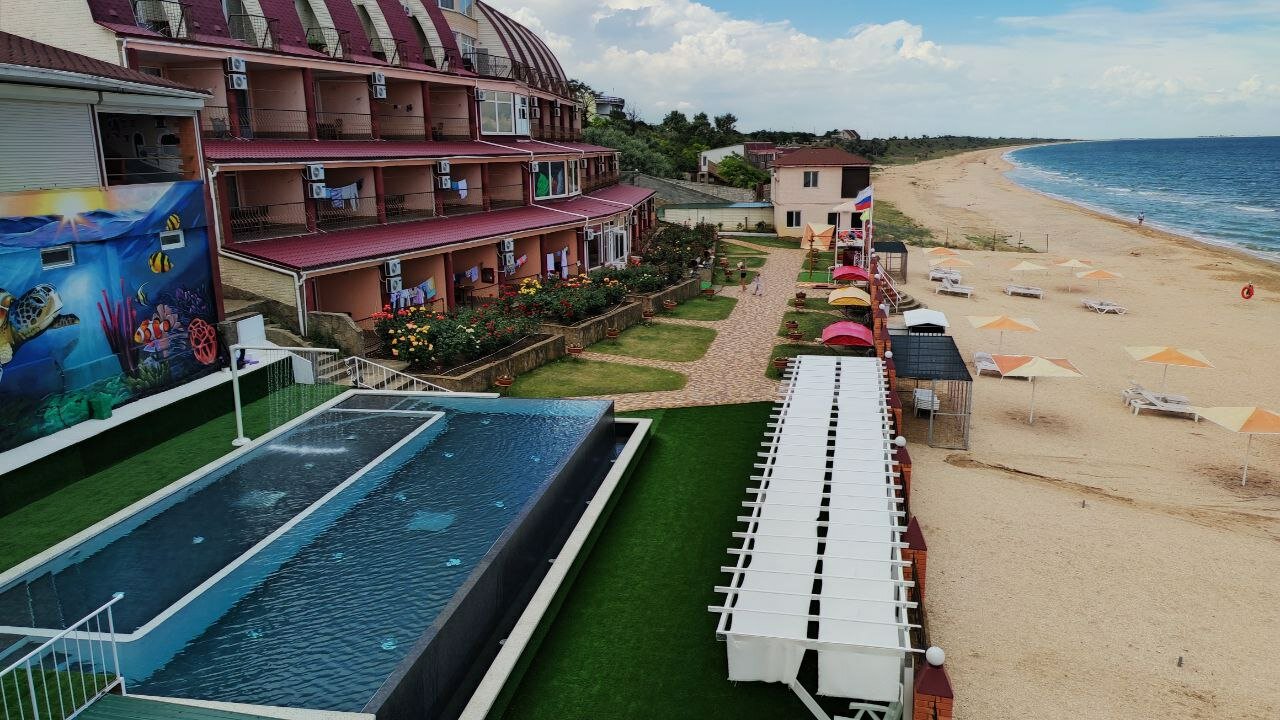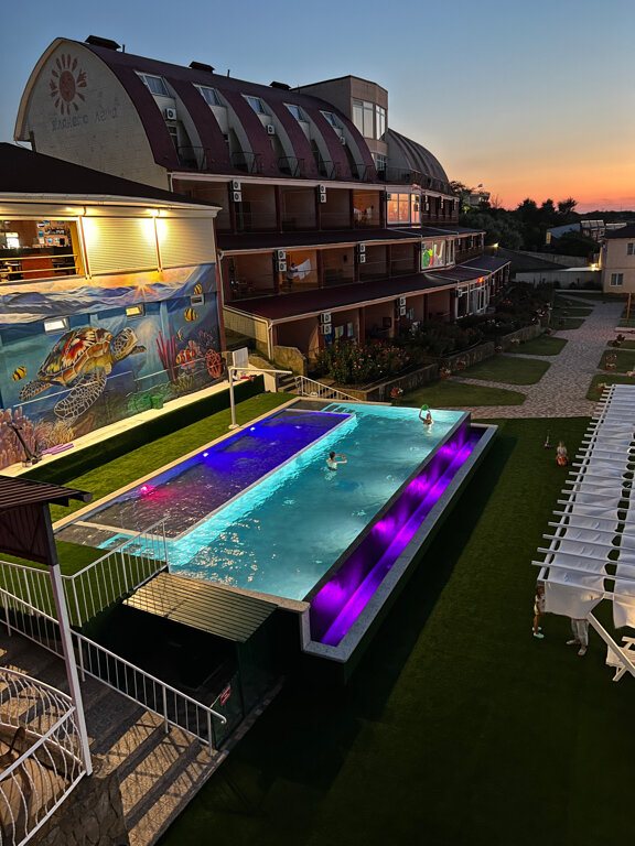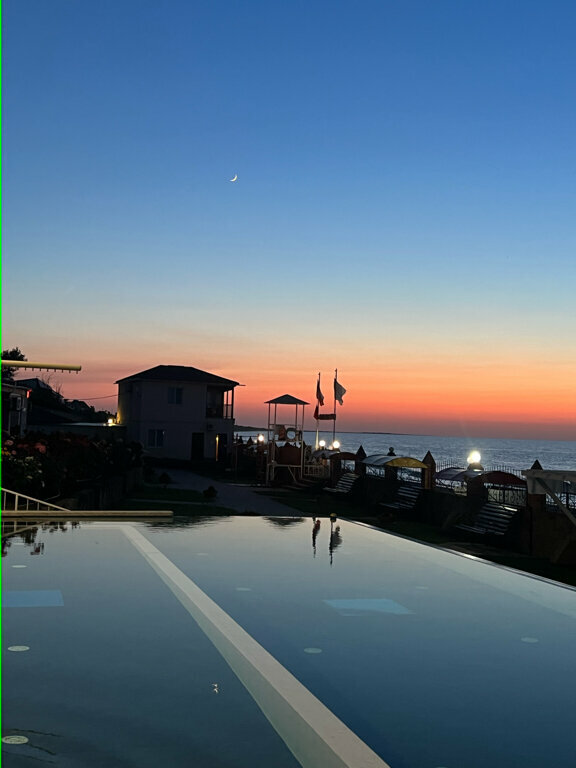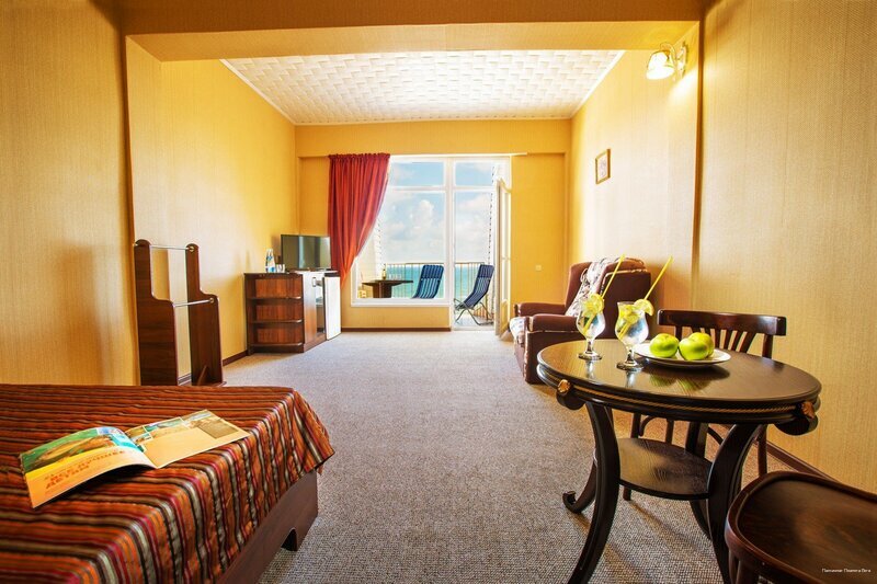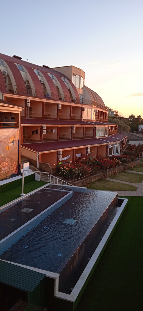 Замечательный пансионат, очень доброжелательный персонал! Анимация для детей вообще выше всяких похвал! Готовят очень вкусно, всего всегда хватает. А если не хватило, то обязательно добавят. Порции кладут от души. Не смотря на то, что отель построен в 2010 году, все номера новые, чистые и аккуратные. Море в двух шагах, все номера с видом на море. Засыпаем и просыпаемся под шум прибоя. Мне так этого не хватало в городе! Большая лоджия с лежаками. Очень рекомендую этот пансионат для отдыха, особенно с детьми! Единственное, чтобы я добавила, это количество вешалок для одежды или полочек, четыре вешалки на семью из 4х человек, это не серьёзно. И постельное белье поплотнее, чтобы не сползало с кровати. Ну это уже мои личные придирки.