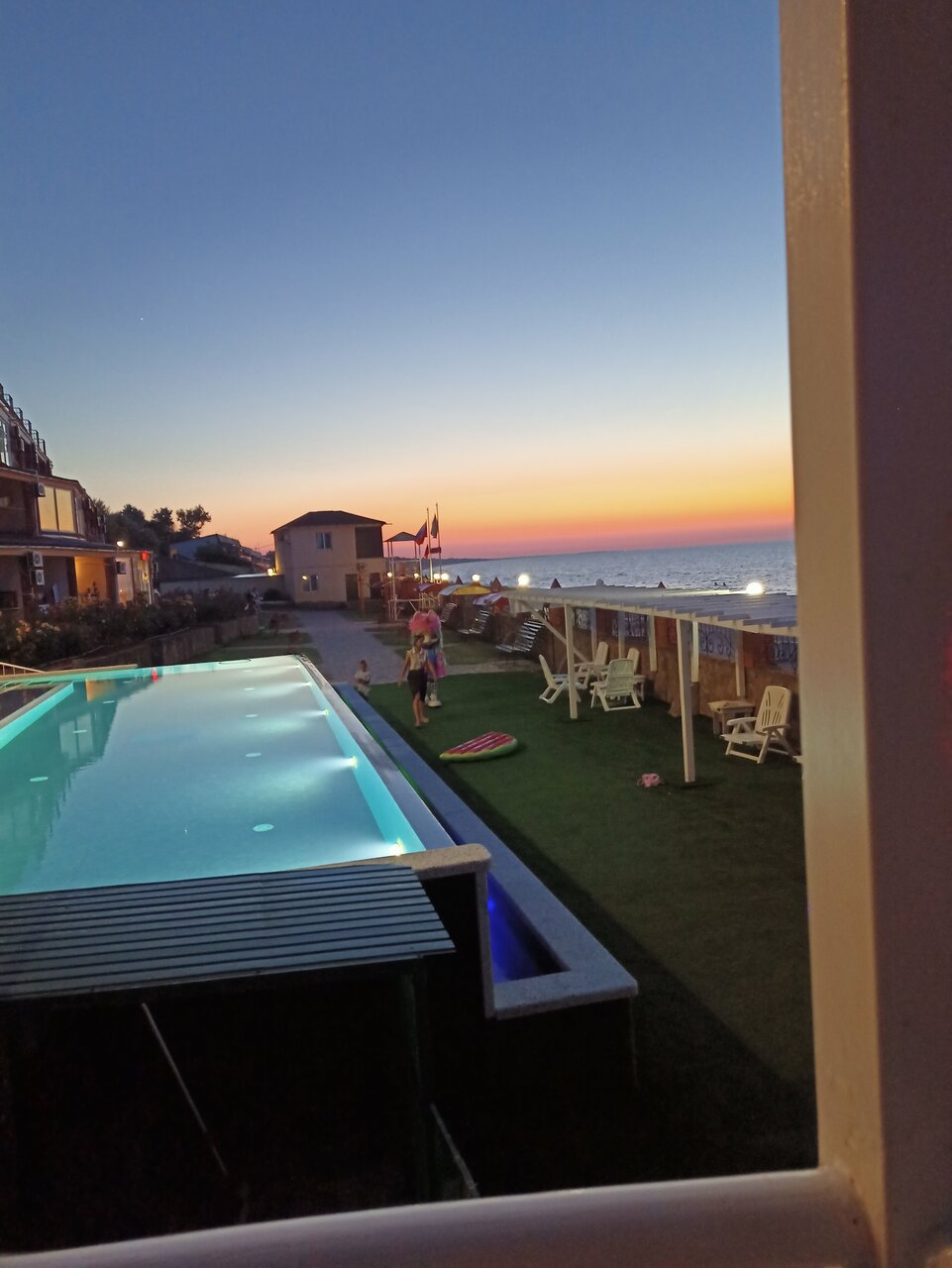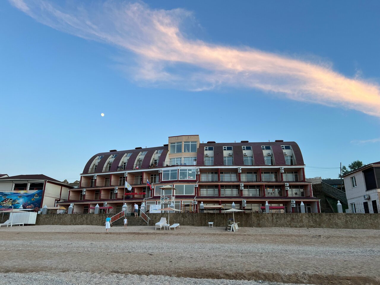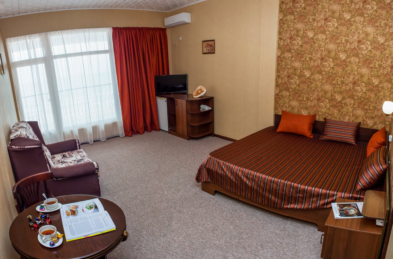 Замечательный пансионат, очень доброжелательный персонал! Анимация для детей вообще выше всяких похвал! Готовят очень вкусно, всего всегда хватает. А если не хватило, то обязательно добавят. Порции кладут от души. Не смотря на то, что отель построен в 2010 году, все номера новые, чистые и аккуратные. Море в двух шагах, все номера с видом на море. Засыпаем и просыпаемся под шум прибоя. Мне так этого не хватало в городе! Большая лоджия с лежаками. Очень рекомендую этот пансионат для отдыха, особенно с детьми! Единственное, чтобы я добавила, это количество вешалок для одежды или полочек, четыре вешалки на семью из 4х человек, это не серьёзно. И постельное белье поплотнее, чтобы не сползало с кровати. Ну это уже мои личные придирки.