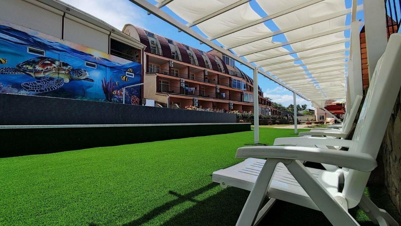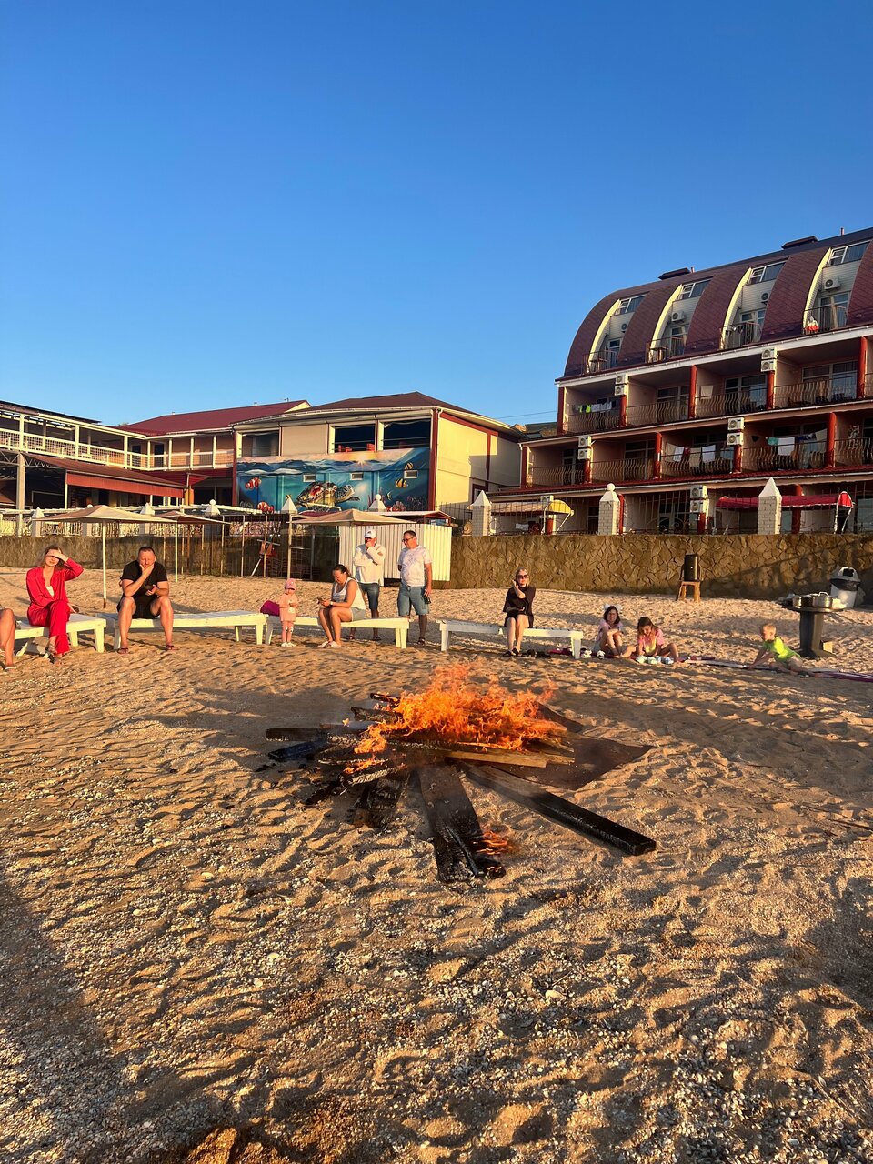 11 год здесь отдыхаем, было бы плохо 11 раз сюда не ездили.Нам всё здесь нравится, вкусная домашняя еда, комфортная атмосфера, чистота в номере, все номера с видом на море, пляж в низу, шикарная детская анимация, спорт уголок, бытовая комната, бассейн.