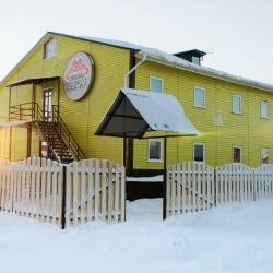 Плюсы: новое здание, свежий ремонт, чисто, уютно, вежливый персонал (помогут, подскажут, раскажут, на тупые вопросы отвечают с улыбкой, ни намёка на хоть какое то хамское поведение, чем славятся провинциальные гостишки), очень вкусная еда в столовой, телевизор большой (а не маленький шипящий ящик из 90х), вменяемый ценник (2400 за одноместный номер с удобствами и завтраком. В Мезени, к примеру, за более высокий ценник не было ничего кроме койки), встретят/отвезут на вокзал, от центра — 15 минут спокойным шагом Минусы: шумоизоляция (прекрасно слышно соседей), нет вай-фай (он как бы есть, но по факту нет). Подводя итог — на мой взгляд лучший вариант на временного проживания на территории Карпогор и ближайших окрестностей. Приеду ещё. Однозначно.