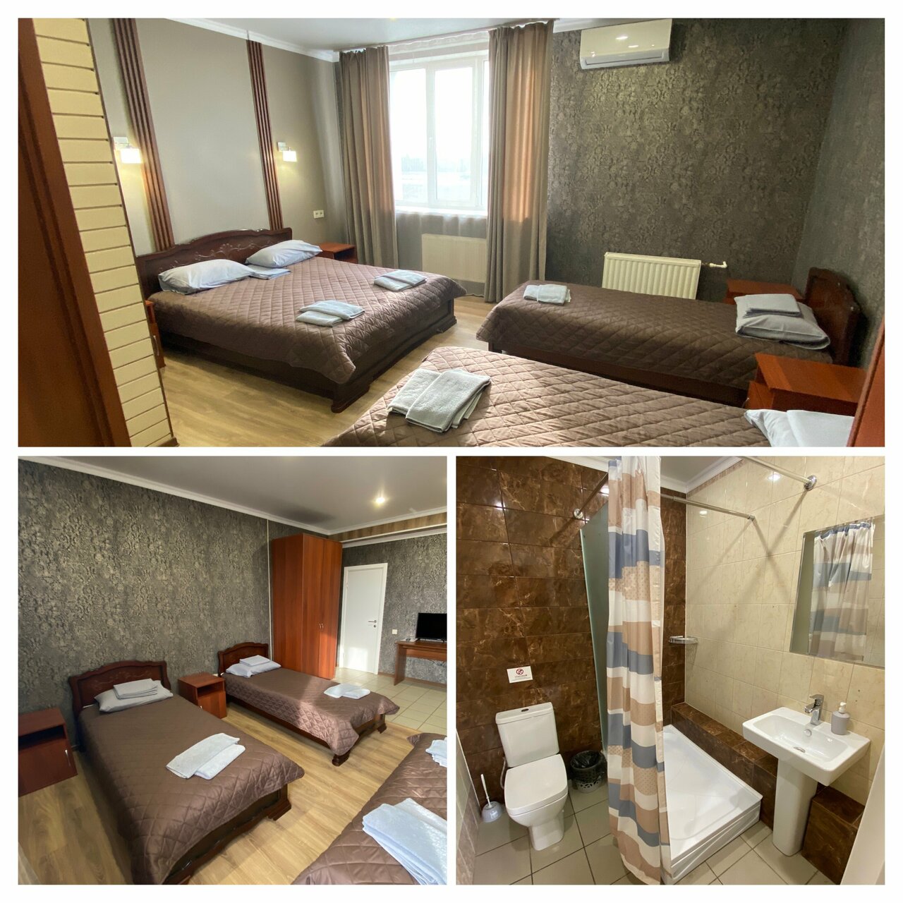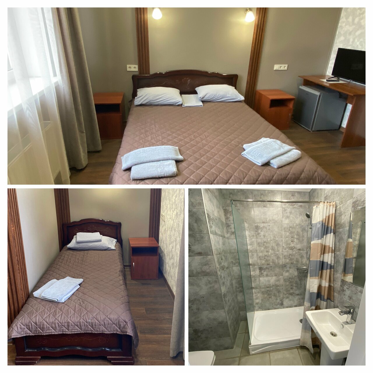 Хорошая гостиница, прямо рядом с трассой. Ехали, устали, нас приняли, на выбор предложили два номера на 4х человек. Один с двумя односпальными и одной двухспальной, и другой номер с 4мя односпальными кроватями. Удобный номер, удобные кровати с добротными матрасами, качественное белье. В номере душ, туалет, кровати, телевизор, кондиционер, холодильник, вешалка, всё, что необходимо путникам, чтобы отдохнуть. Предложили поужинать, а на утро пригласили на завтрак. В гостинице работает собственная столовая. Цены на питание вполне демократичные. Машина стояла под окнами номера. Добрая, отзывчивая женщина-администратор. Душевно приняли и утром проводили.