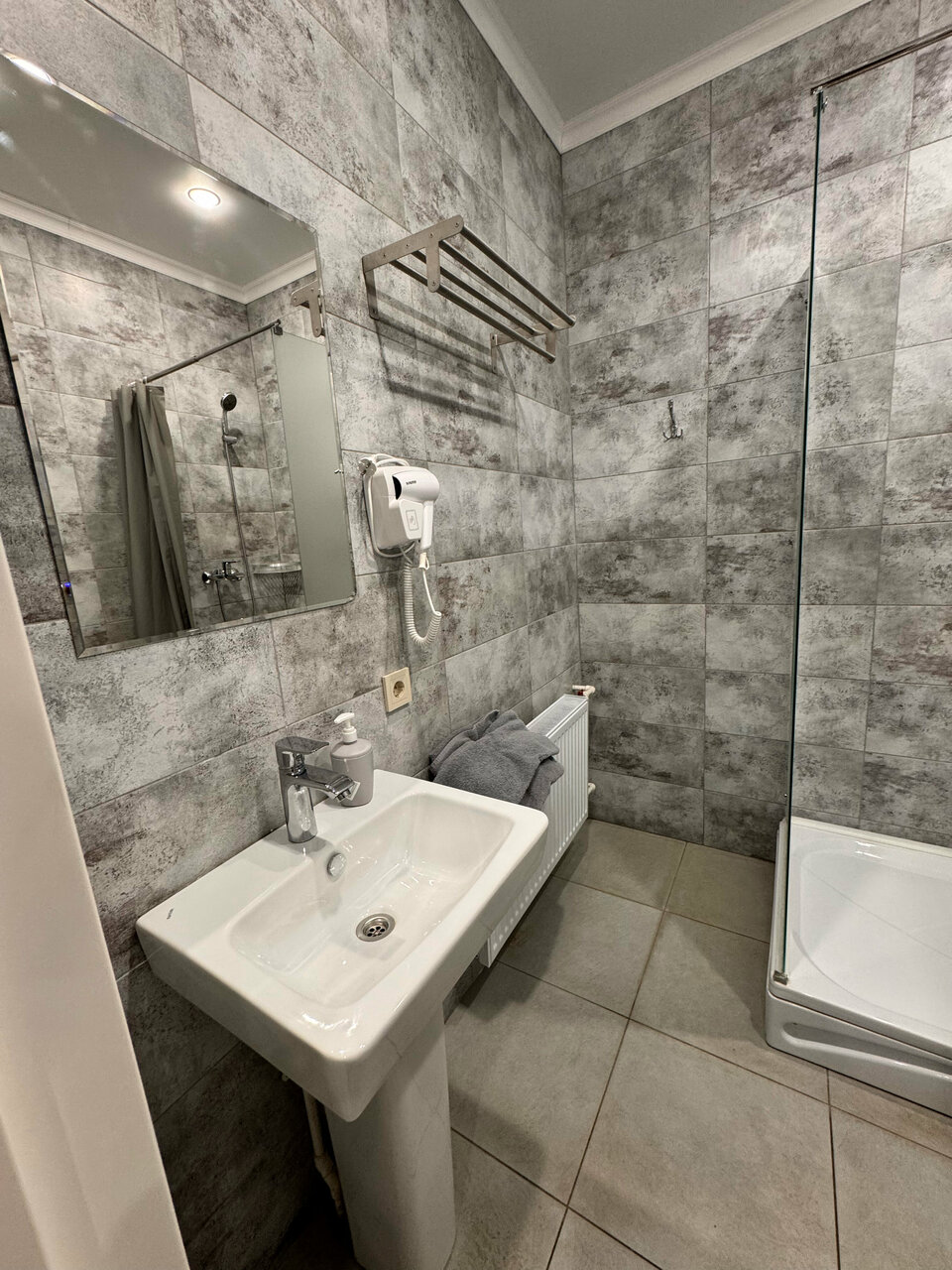 Ужасно всё!!! Номер стоил 3750р, за что? Номер ужасно холодный, плитка на полу ледяная, запах пыли- ребенок кашлял всю ночь. Вода в душе то ледяная, то теплая, шторка ужасно грязная. Дверь закрывается, что трясется все кругом, потолок и стены. О предметах для гигиены ( гель, зубные щетки и тп) здесь даже и не слышали… Однозначно НЕ СОВЕТУЮ!!!